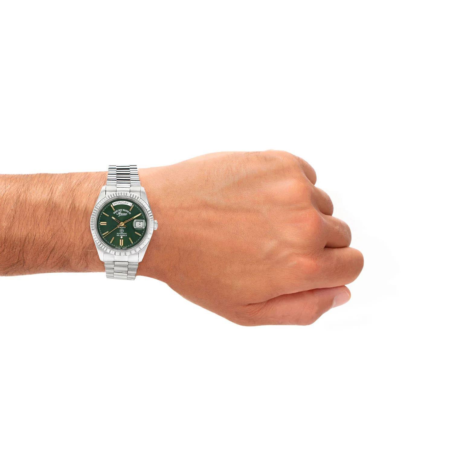 ساعت مچی مردانه وست اند واچ westendwatch با طراحی روزانه بند استیل و قاب استیل و صفحه سبز صدفی با شیشه ضد خراش و قابلیت داشتن تقویم / شب نما / روزهای هفته و موتوراتوماتیک سوییسی با انرژی مکانیکی و مقاوم در برابر آب تا عمق 50 متر به همراه گارانتی بین المللی
