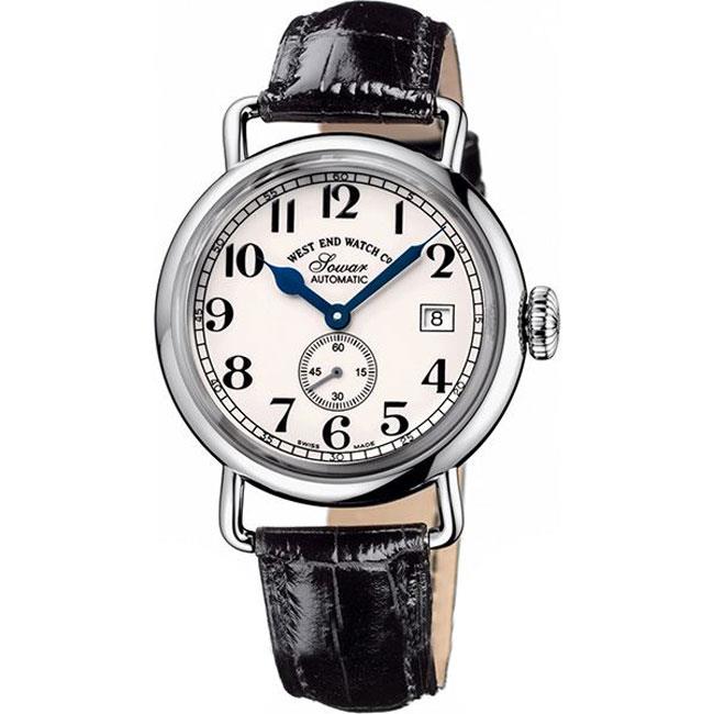 ساعت مچی مردانه وست اند واچ westendwatch با طراحی روزانه بند چرمی مشکی و قاب استیل و صفحه گرد سفید با شیشه ضد خراش و قابلیت داشتن تقویم / زیر ثانیه و موتوراتوماتیک سوییسی با انرژی مکانیکی و مقاوم در برابر آب تا عمق 50 متر به همراه گارانتی بین المللی