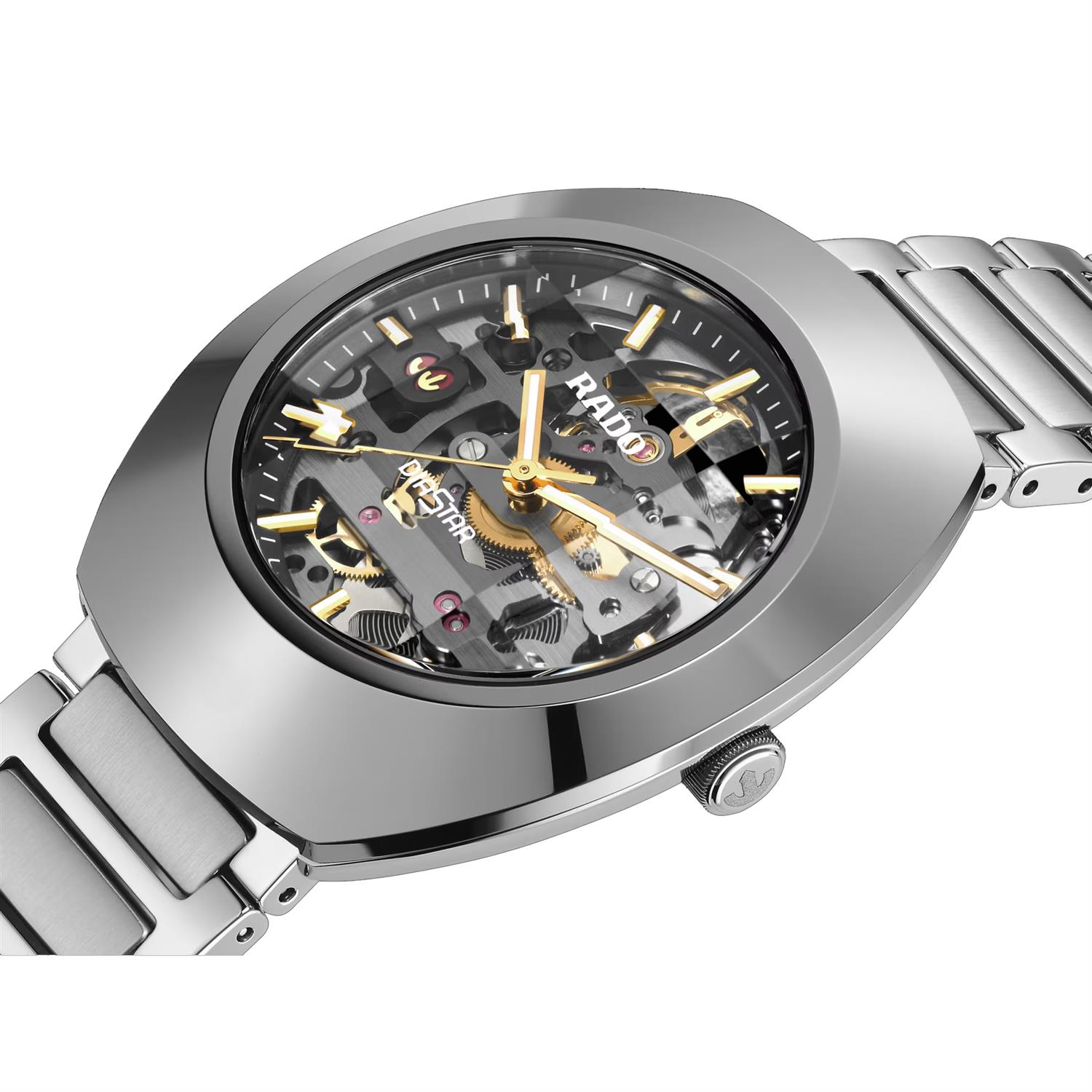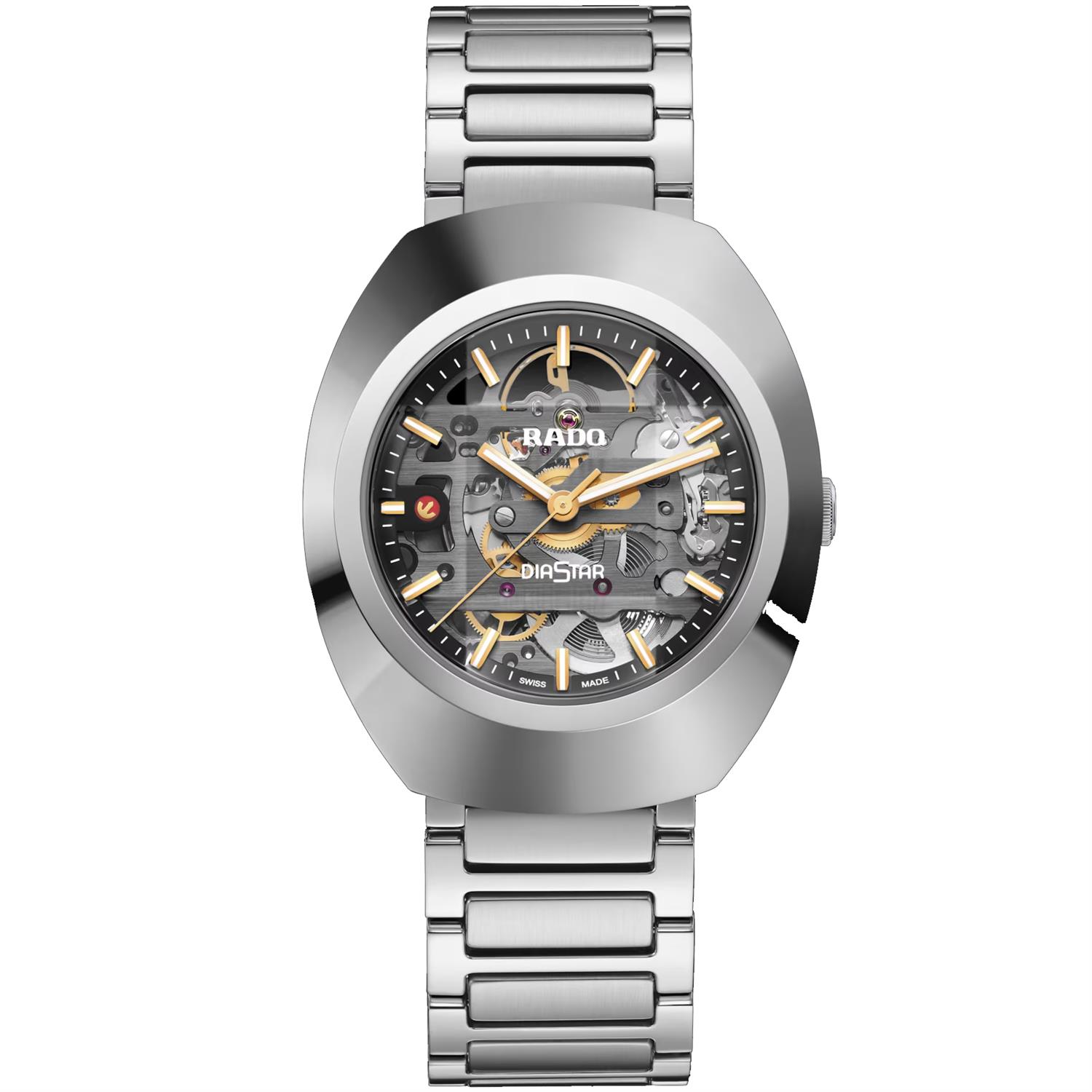 ساعت مچی مردانه رادو RADO با طراحی روزانه بند استیل با قفل کلیپسی و قاب بیضی شکل و صفحه اسکلتون طوسی با قابلیت داشتن شب نما و موتور اتوماتیک سوییسی با انرژی مکانیکی و مقاوم در برابر آب تا عمق 100 متر به همراه گارانتی بین المللی