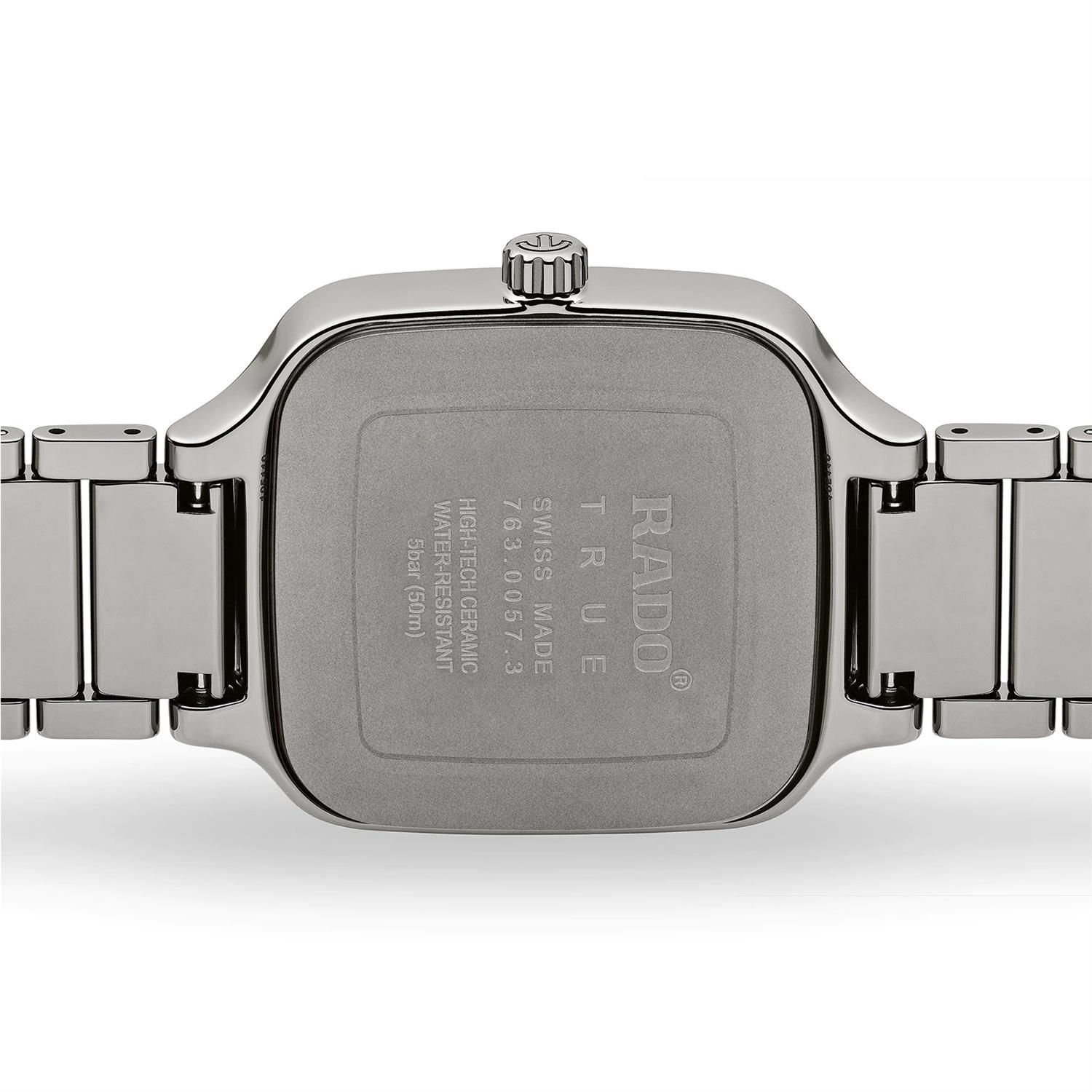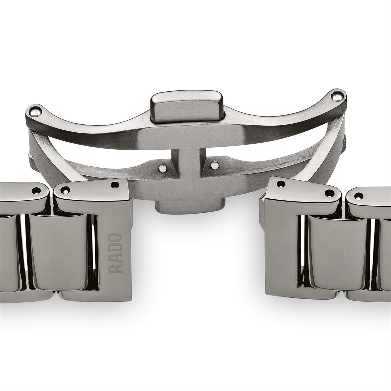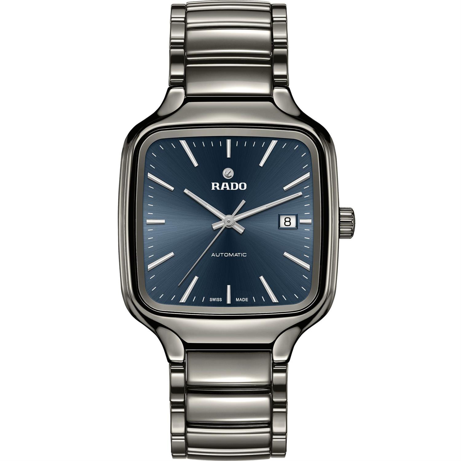 ساعت مچی مردانه رادو RADO با طراحی روزانه بند سرامیکی دودی با قفل کلیپسی و قاب مربعی شکل دودی و صفحه  سرمه ای با قابلیت داشتن تقویم/ شب نما و موتور اتوماتیک سوییسی با انرژی مکانیکی و مقاوم در برابر آب تا عمق 50 متربه همراه گارانتی بین المللی