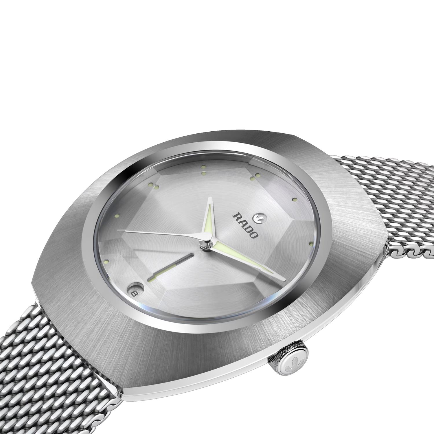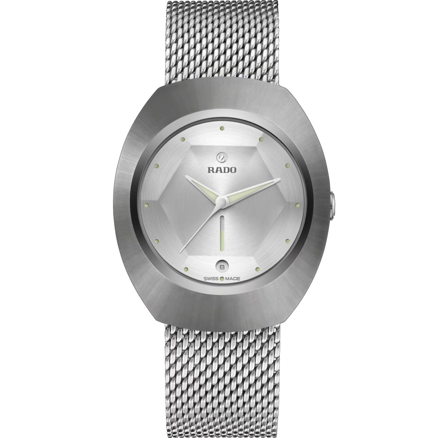ساعت مچی مردانه رادو RADO با طراحی روزانه بند حصیر بافت استیل و قاب متفاوت استیل و صفحه گرد نقره ای با قابلیت داشتن تقویم/ شب نما / روزهای هفته و شیشه ضد خراش و موتور اتوماتیک سوییسی با انرژی مکانیکی و مقاوم در برابر آب تا عمق 100 متر به همراه گارانتی بین المللی