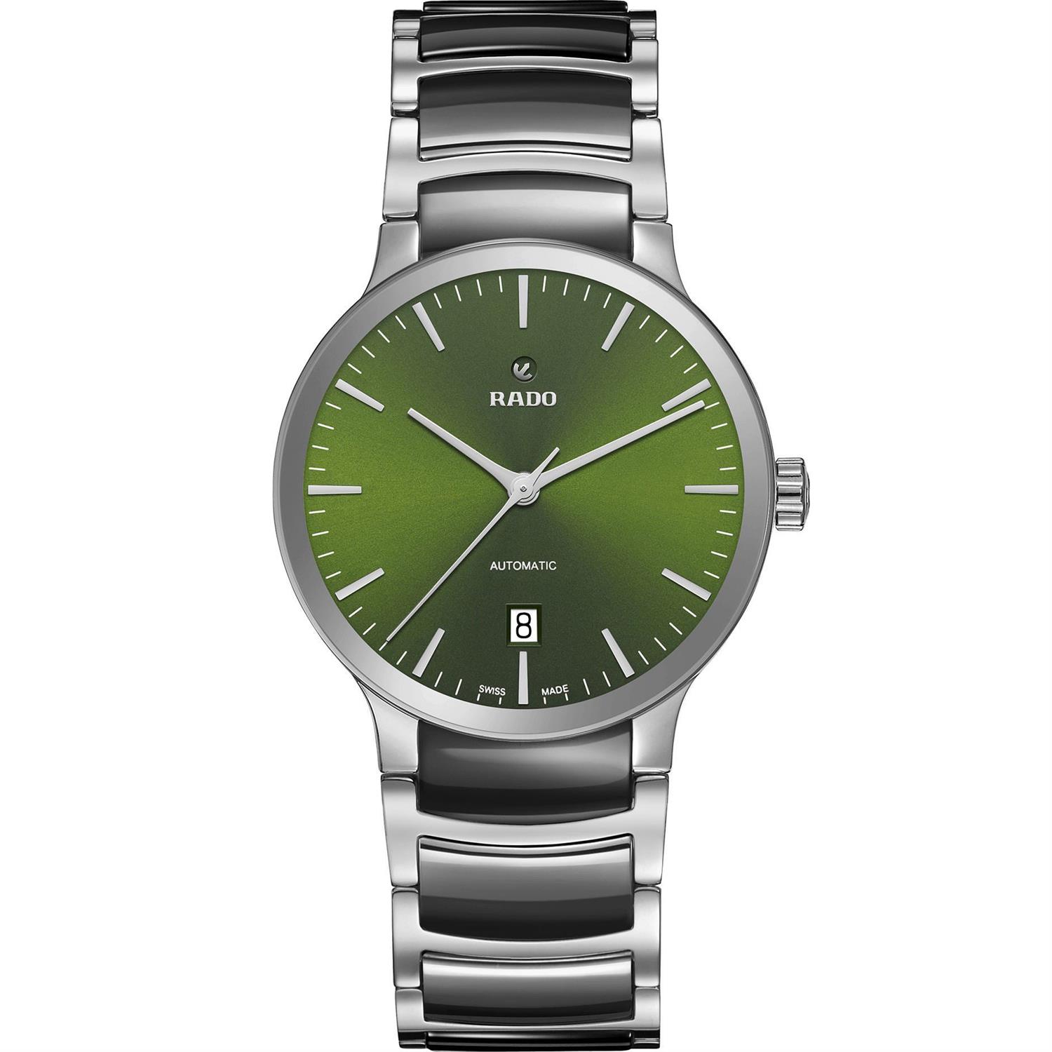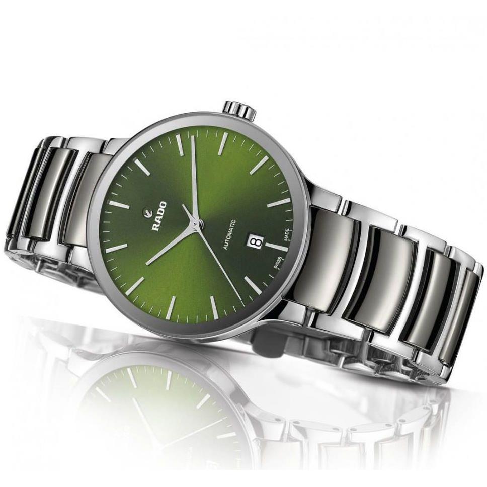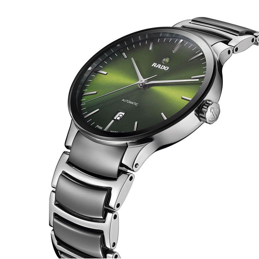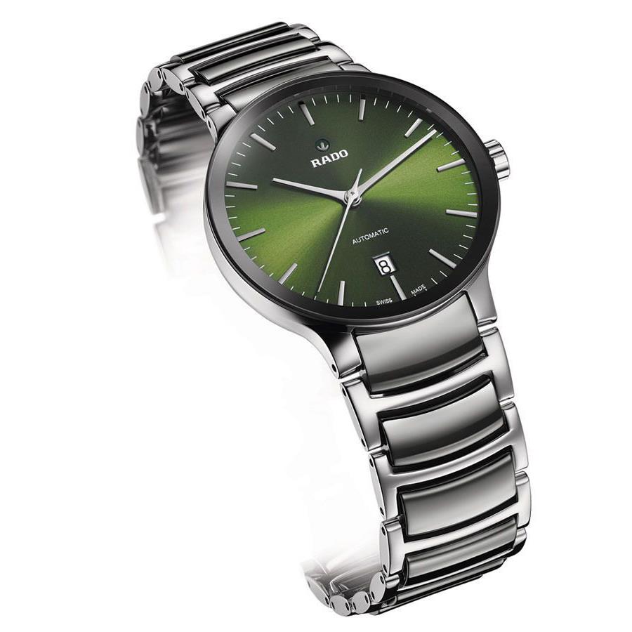 ساعت مچی مردانه رادو RADO با طراحی روزانه بند استیل طوسی و قاب گرد استیل و صفحه گرد سبز با قابلیت داشتن تقویم و شیشه ضد خراش و موتور اتوماتیک سوییسی با انرژی مکانیکی و مقاوم در برابر آب تا عمق 30 متر به همراه گارانتی بین المللی
