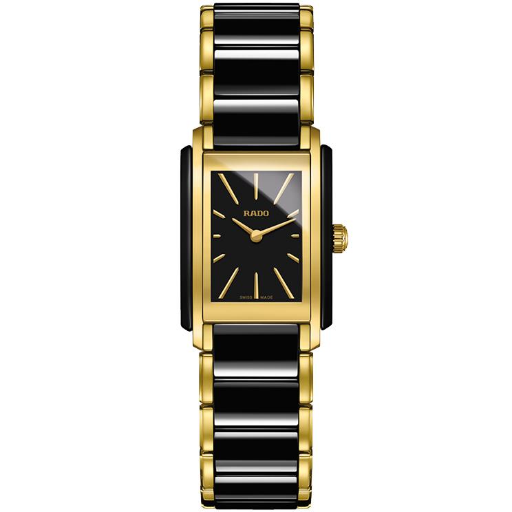 ساعت مچی زنانه رادو Rado با طراحی روزانه بند دو رنگ استیل/سرامیک و قاب دو رنگ با صفحه مستطیلی مشکی و شیشه ضد خراش با موتور سوییسی با انرژی باتری و مقاوم در برابر آب تا عمق 50 متر به همراه گارانتی بین المللی