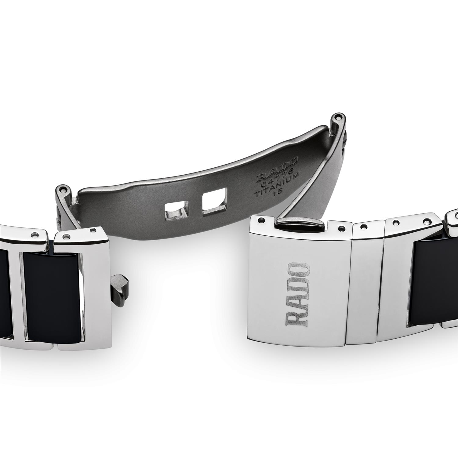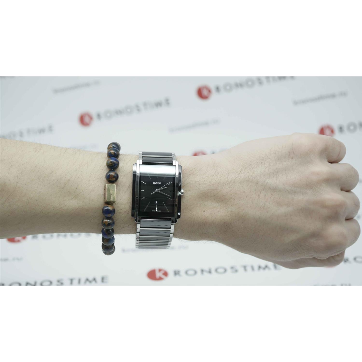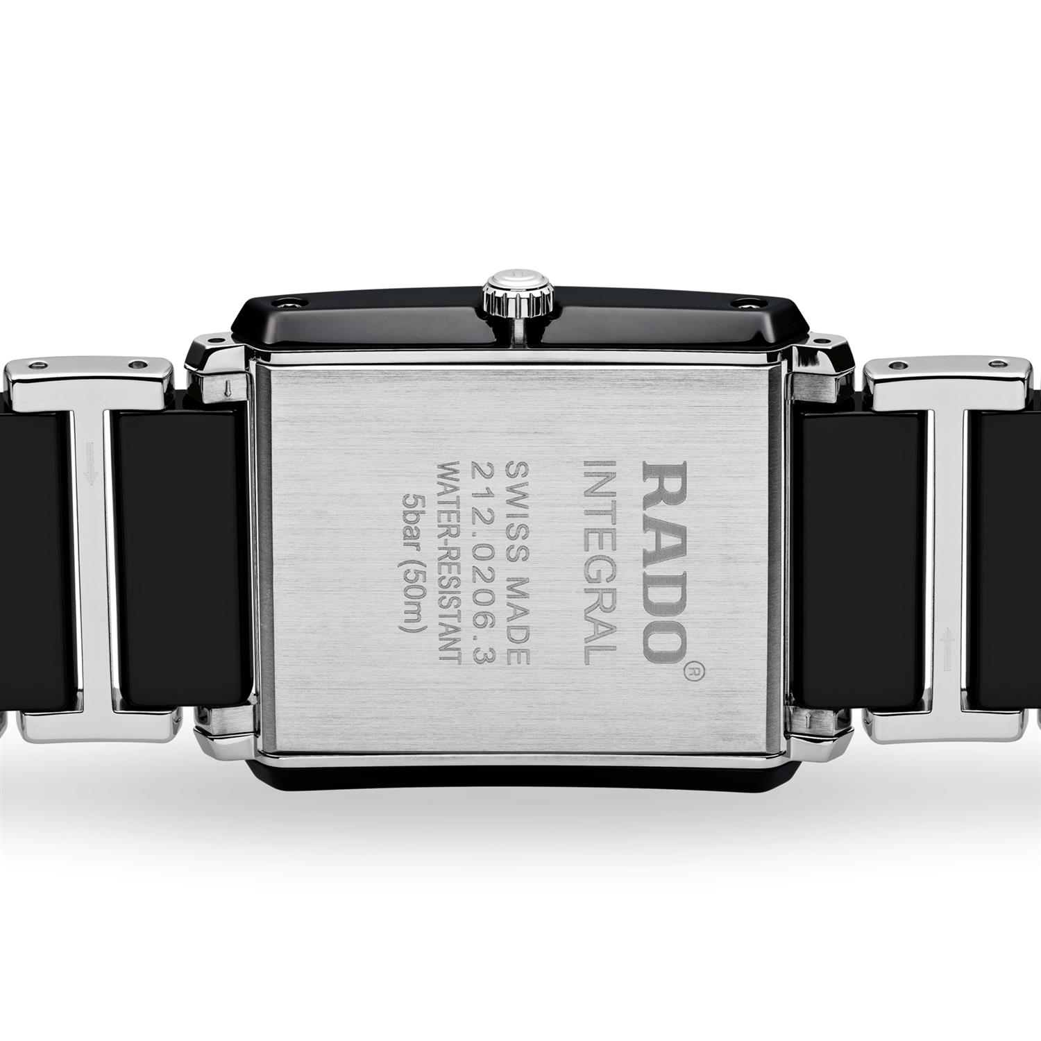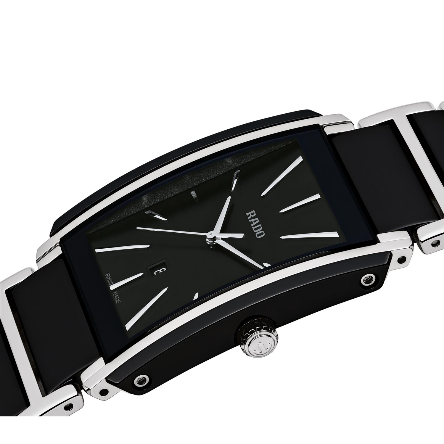 ساعت مچی مردانه رادو RADO با طراحی روزانه بند استیل مشکی و قاب مستطیلی استیل مشکی و صفحه مشکی با قابلیت داشتن تقویم و شیشه ضد خراش و موتور سوییسی با انرژی باتری و مقاوم در برابر آب تا عمق 50 متر به همراه گارانتی بین المللی