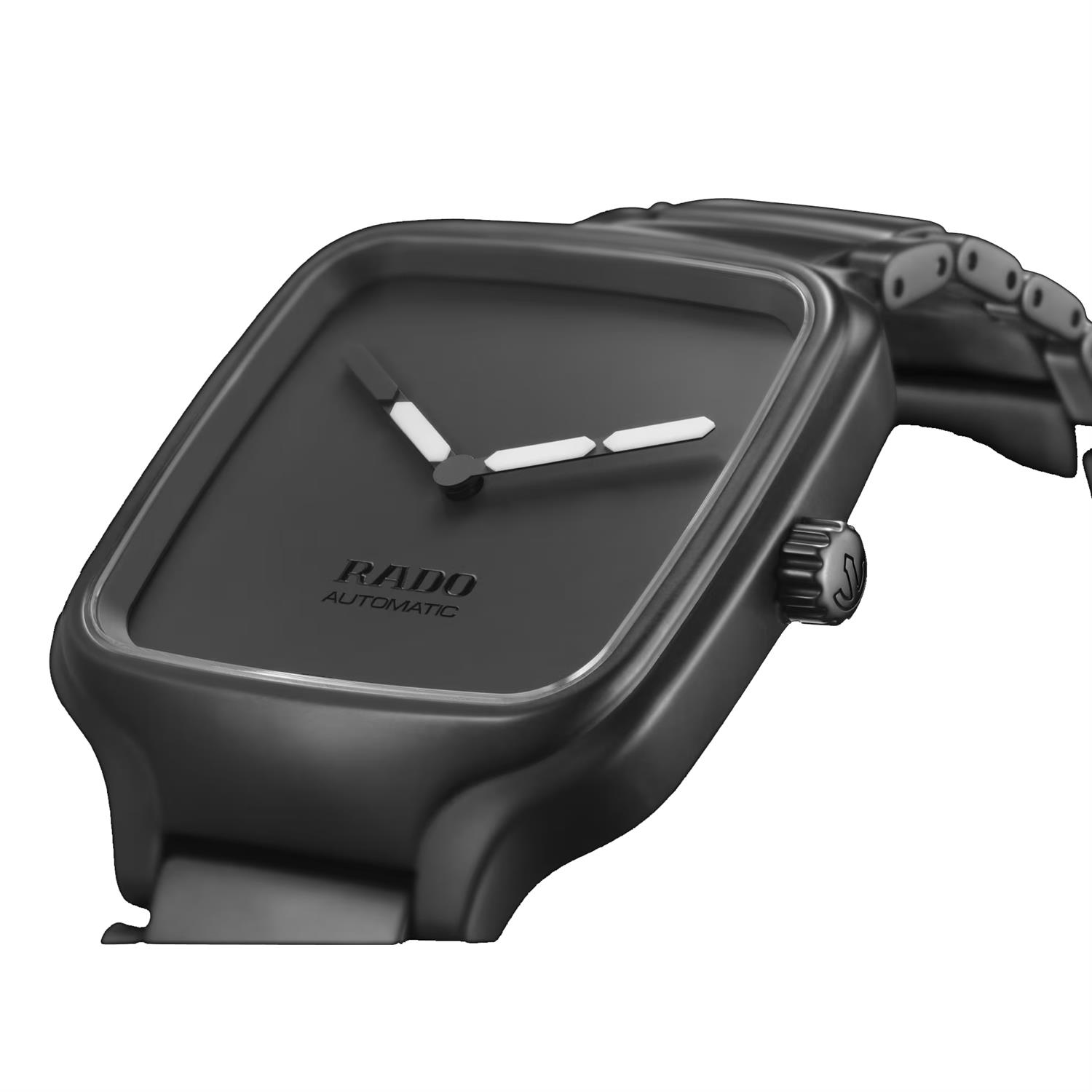ساعت مچی مردانه رادو RADO با طراحی کلاسیک بند مشکی و قاب مشکی و صفحه مربعی مشکی با قابلیت داشتن شب نما و شیشه ضد خراش و موتور اتوماتیک سوییسی با انرژی مکانیکی و مقاوم در برابر آب تا عمق 50 متر به همراه گارانتی بین المللی