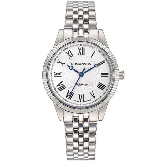 ساعت مچی زنانه رومانسون ROMANSON با طراحی روزانه بند استیل با قاب استیل و صفحه سفید با شیشه ضد خراش و موتور سوییسی با انرژی باطری و مقاوم در برابر آب تا عمق 30 متر به همراه دو سال گارانتی بین المللی