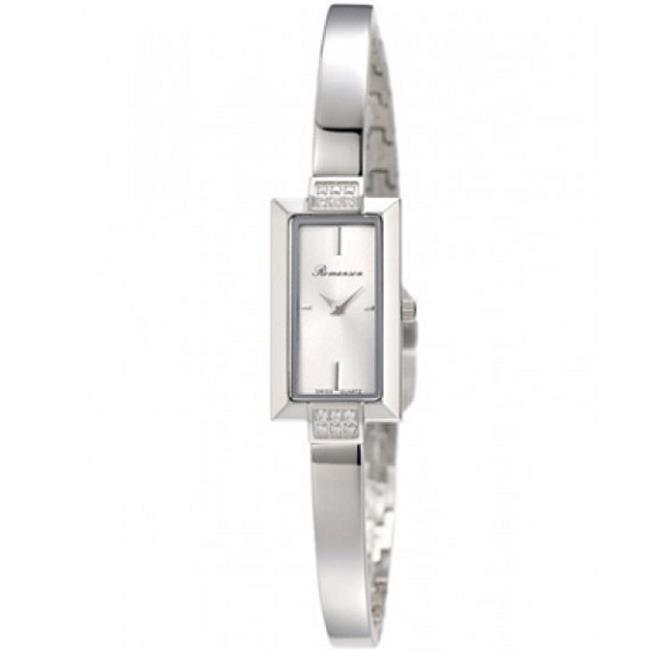 ساعت مچی زنانه رومانسون ROMANSON با طراحی روزانه بند استیل با قاب نگین داراستیل و صفحه مستطیل نقره ای و موتور سوییسی با انرژی باطری و مقاوم در برابر آب تا عمق 30 متر به همراه دو سال گارانتی بین المللی