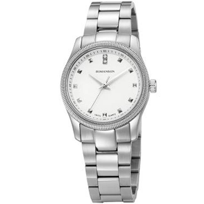 ساعت مچی زنانه رومانسون ROMANSON با طراحی روزانه بند استیل با قاب استیل و صفحه نگین دارنقره ای با شیشه ضد خراش و موتور سوییسی با انرژی باطری و مقاوم در برابر آب تا عمق 50 متر به همراه دو سال گارانتی بین المللی