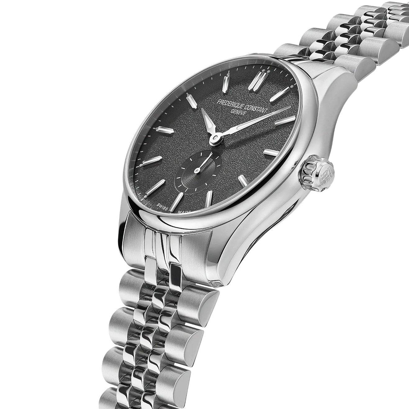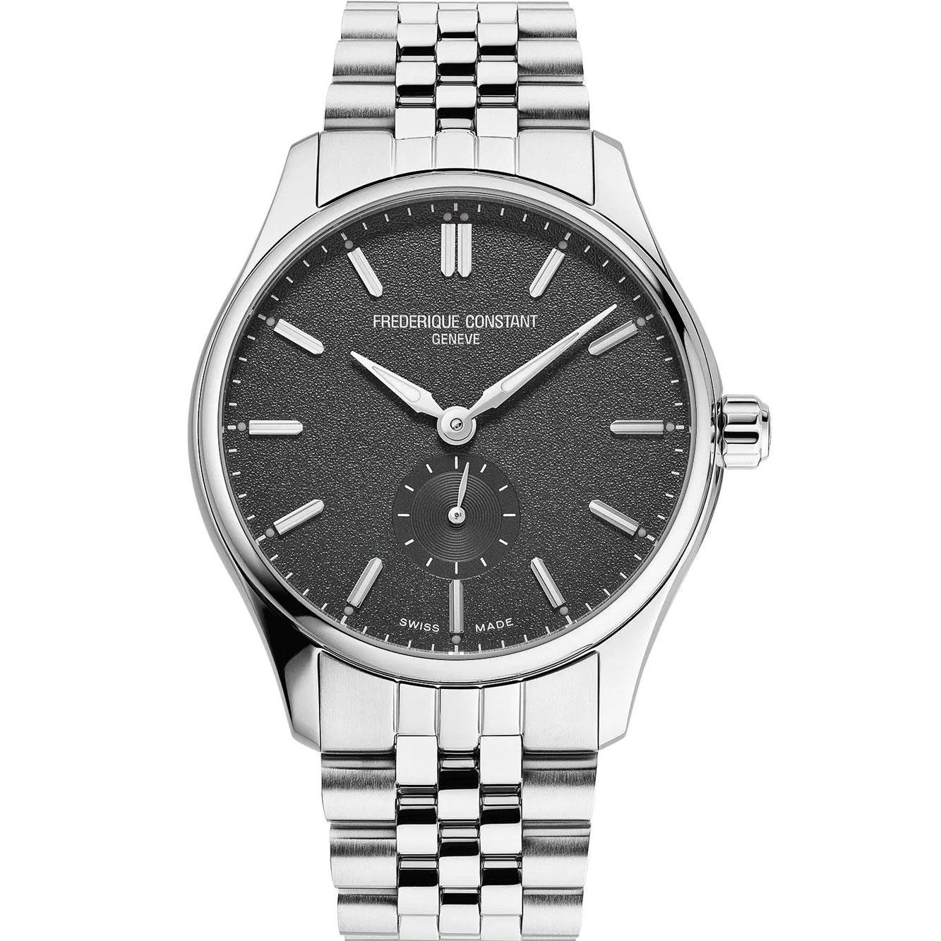 ساعت مچی مردانه FREDERIQUE CONSTANT با طراحی کلاسیک بند استیل با قاب گرد استیل و صفحه طوسی رنگ با شیشه ضد خراش و قابلیت داشتن زیر ثانیه,شب نما و موتور اتوماتیک سوییسی با انرژی مکانیکی و مقاوم در برابر آب تا عمق 50 متر به همراه دو سال گارانتی بین المللی