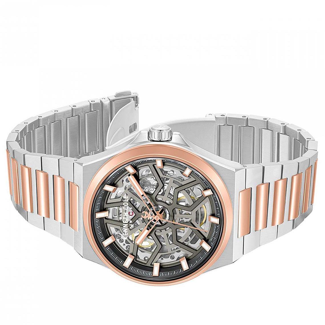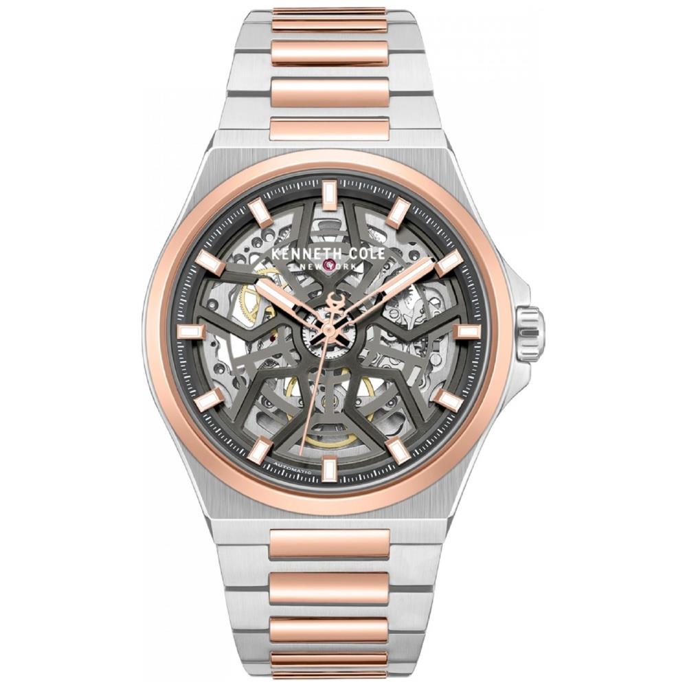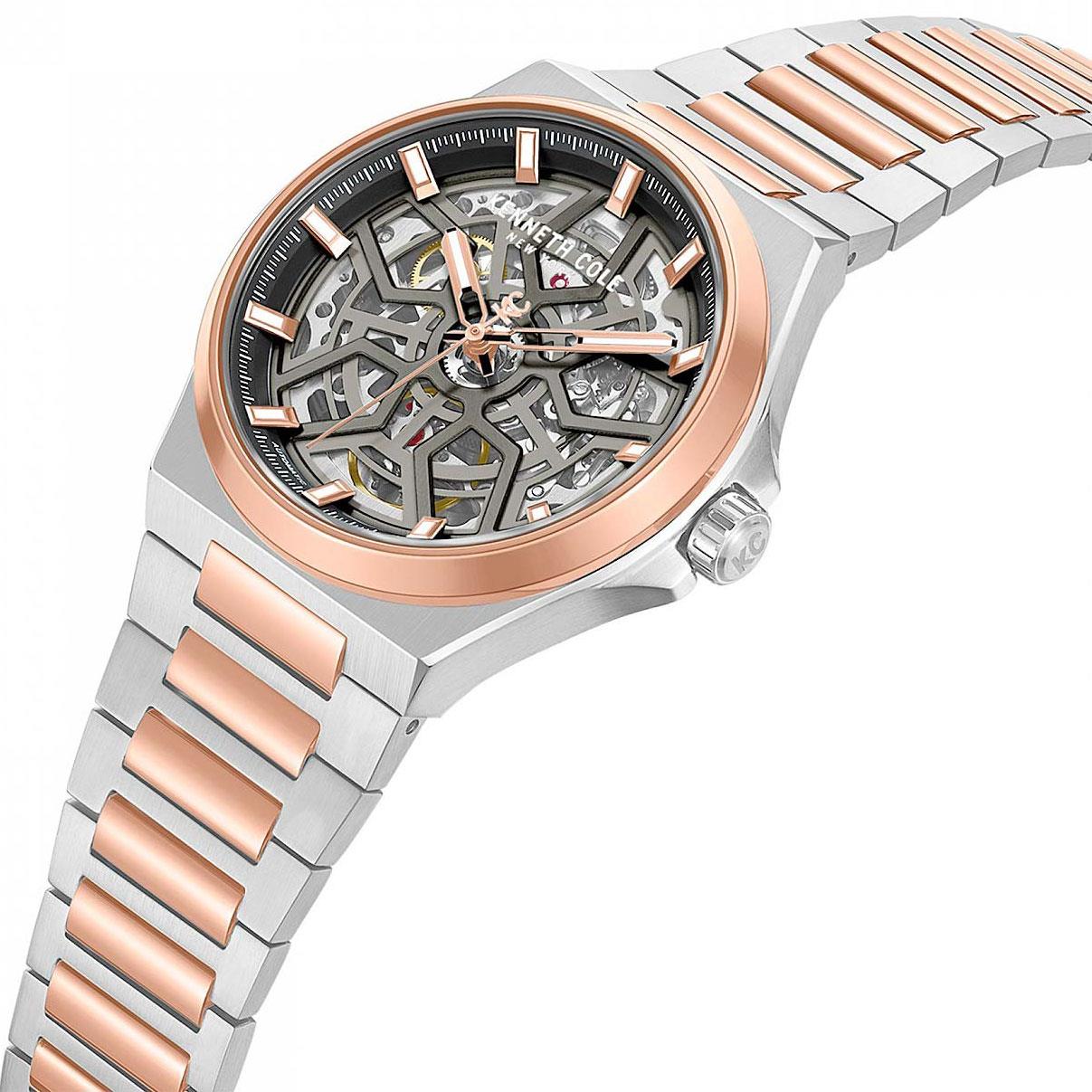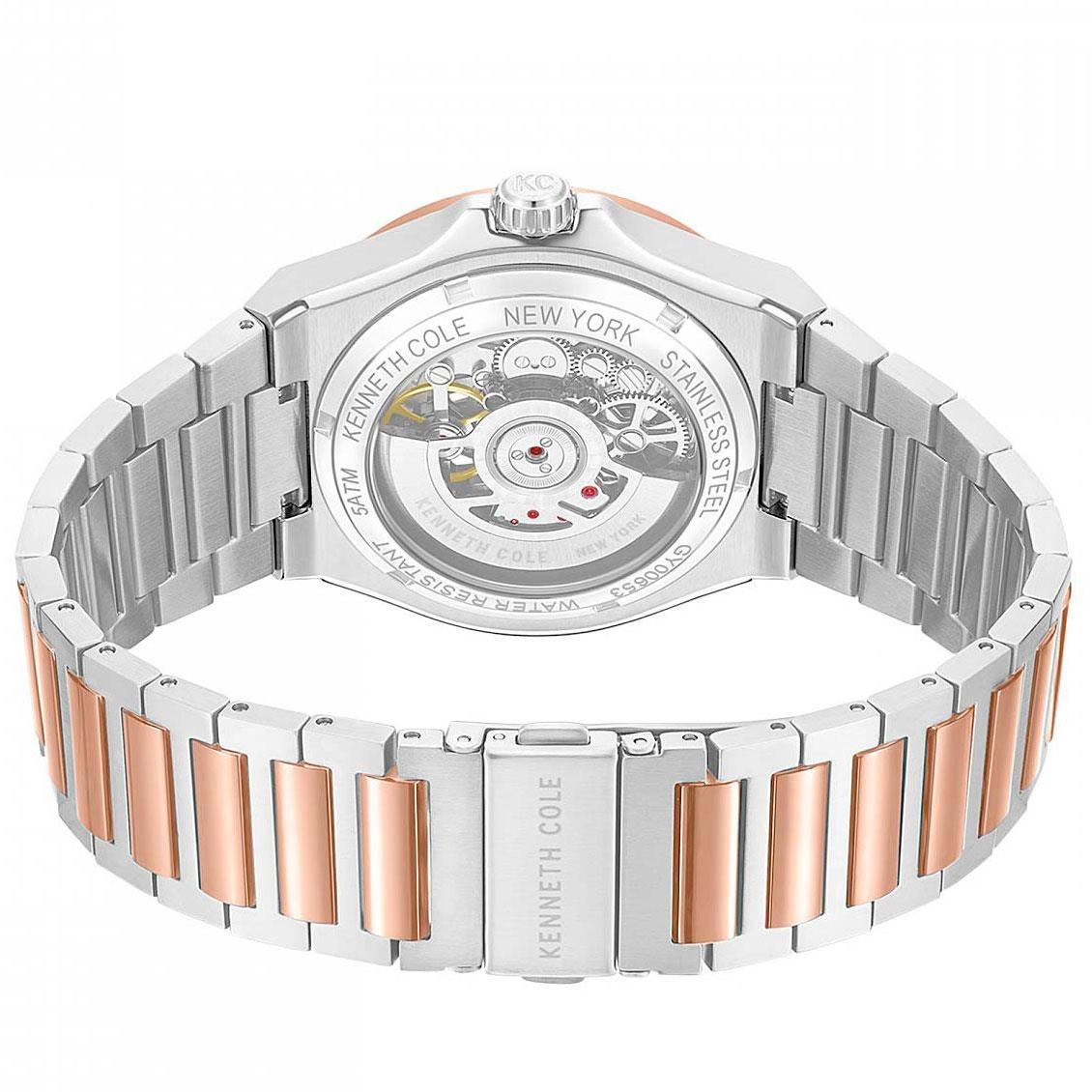 ساعت مچی مردانه کنت کول kenneth cole  با طراحی روزانه بند استیل مسی و قاب گرد مسی استیل با صفحه اسکلتون طوسی با قابلیت داشتن شب نما و موتور اتوماتیک ژاپنی با انرژی مکانیکی و مقاومت در برابر آب تا عمق 50 متر به همراه دو سال گارانتی بین المللی