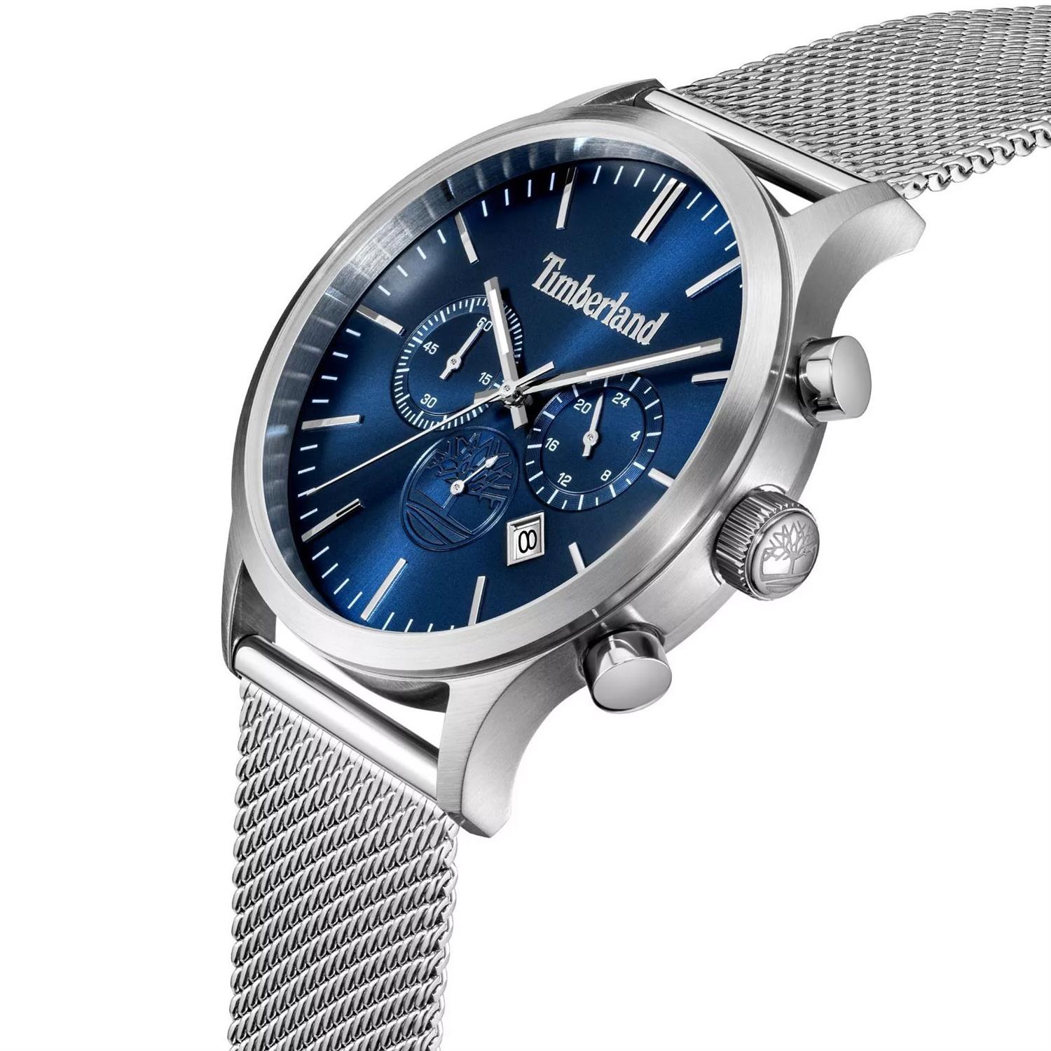 ساعت مچی مردانه تیمبرلند Timberland با طراحی روزانه بند حصیربافت استیل و قاب گرد استیل و صفحه گرد سرمه ای با قابلیت شب نما کرنوگراف تقویم و موتور ژاپنی با انرژی باتری و مقاومت در برابر آب تا عمق 50 متر به همراه دو سال گارانتی بین المللی