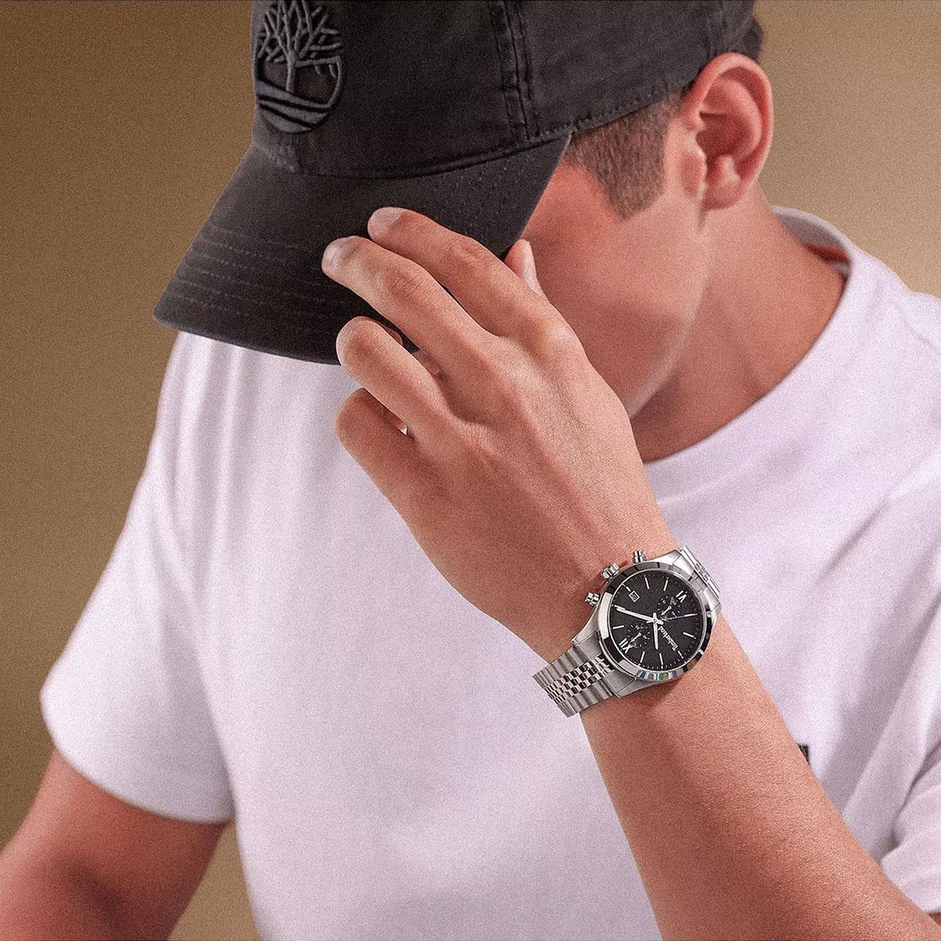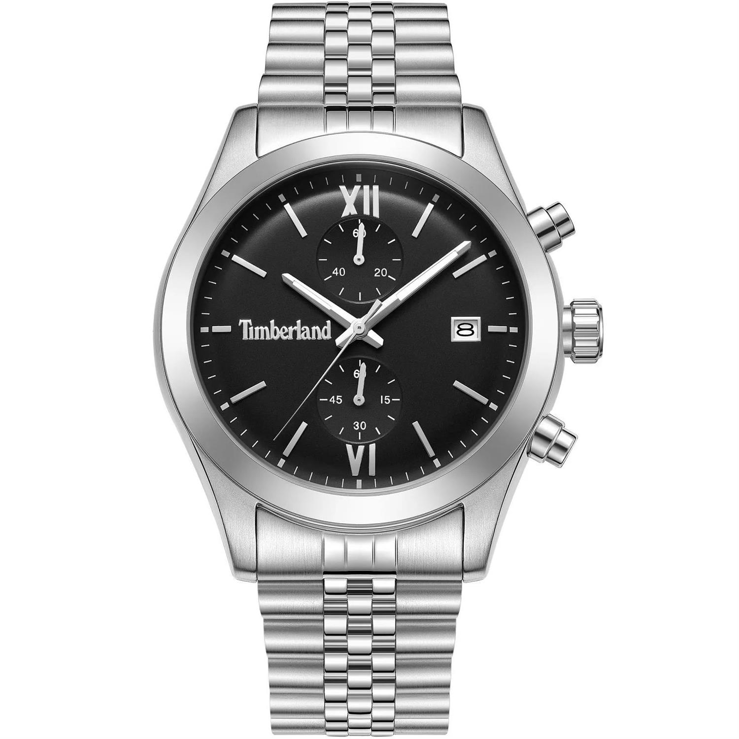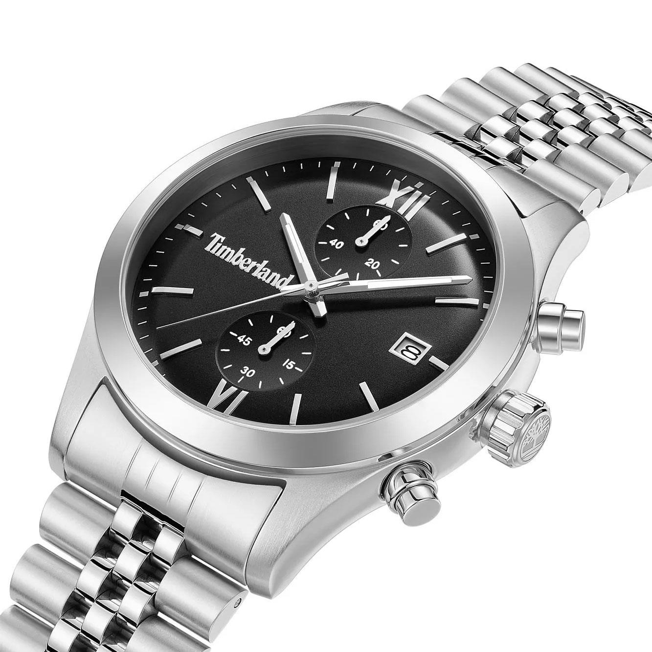 ساعت مچی مردانه تیمبرلند Timberland با طراحی روزانه بند استیل و قاب گرد استیل و صفحه گرد مشکی با قابلیت شب نما کرنوگراف تقویم و موتور ژاپنی با انرژی باتری و مقاومت در برابر آب تا عمق 50 متر به همراه دو سال گارانتی بین المللی