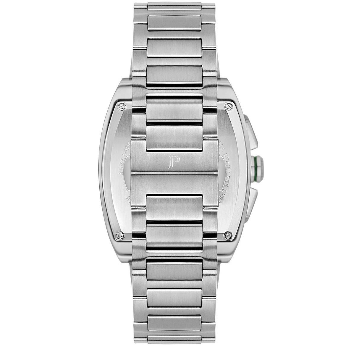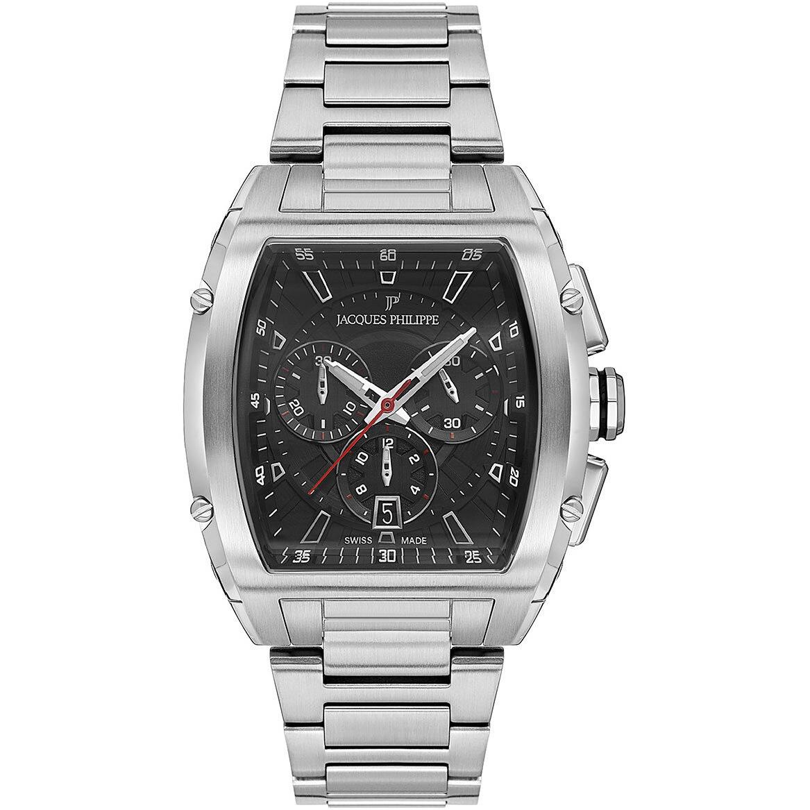 ساعت مچی مردانه ژاک فیلیپ jacques philippe با طراحی روزانه بند استیل و قاب مستطیلی شکل استیل با صفحه مشکی و قابلیت داشتن تقویم / شبنما / کرنوگراف با موتور سوییسی و انرژی باتری و مقاوم در برابر آب تا عمق 50 متر به همراه گارانتی بین المللی