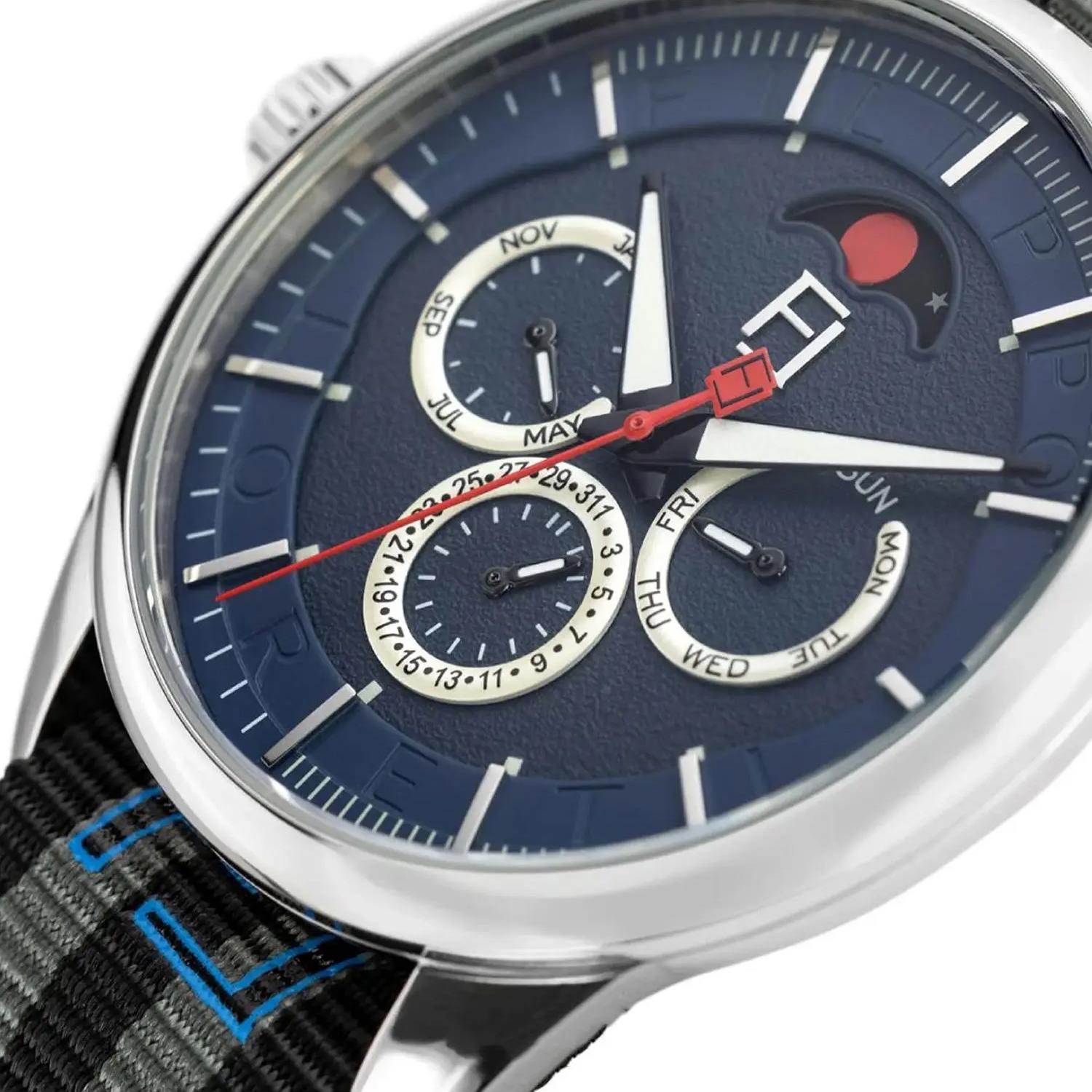 ساعت مچی مردانه فیلیپو لورتی filippoloreti با طراحی اسپرت بند سیلیکونی دورنگ و قاب گرد فلزی و صفحه گرد سرمه ای با قابلیت داشتن شب نما / روزهای هفته / نمایش ماه میلادی / موقعیت کنونی ماه و ستاره و موتور ژاپنی با ا نرژی باتری و مقاوم در برابر آب تا عمق 50 متر به همراه گارانتی بین المللی