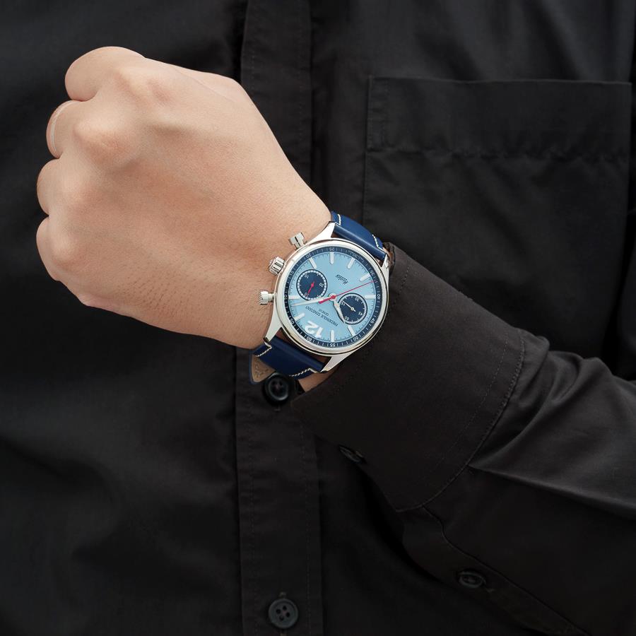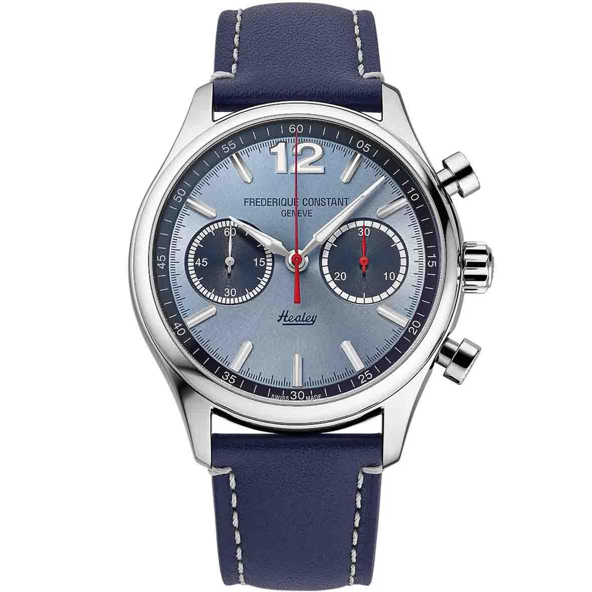 ساعت مچی مردانه FREDERIQUE CONSTANT با طراحی کلاسیک بند چرمی سرمه ای و قاب گرد استیل و صفحه سرمه ای آبی با شیشه ضد خراش و قابلیت داشتن کرنوگراف / شب نما و موتور اتوماتیک سوییسی با انرژی مکانیکی و مقاوم در برابر آب تا عمق 50 متر به همراه دو سال گارانتی بین المللی