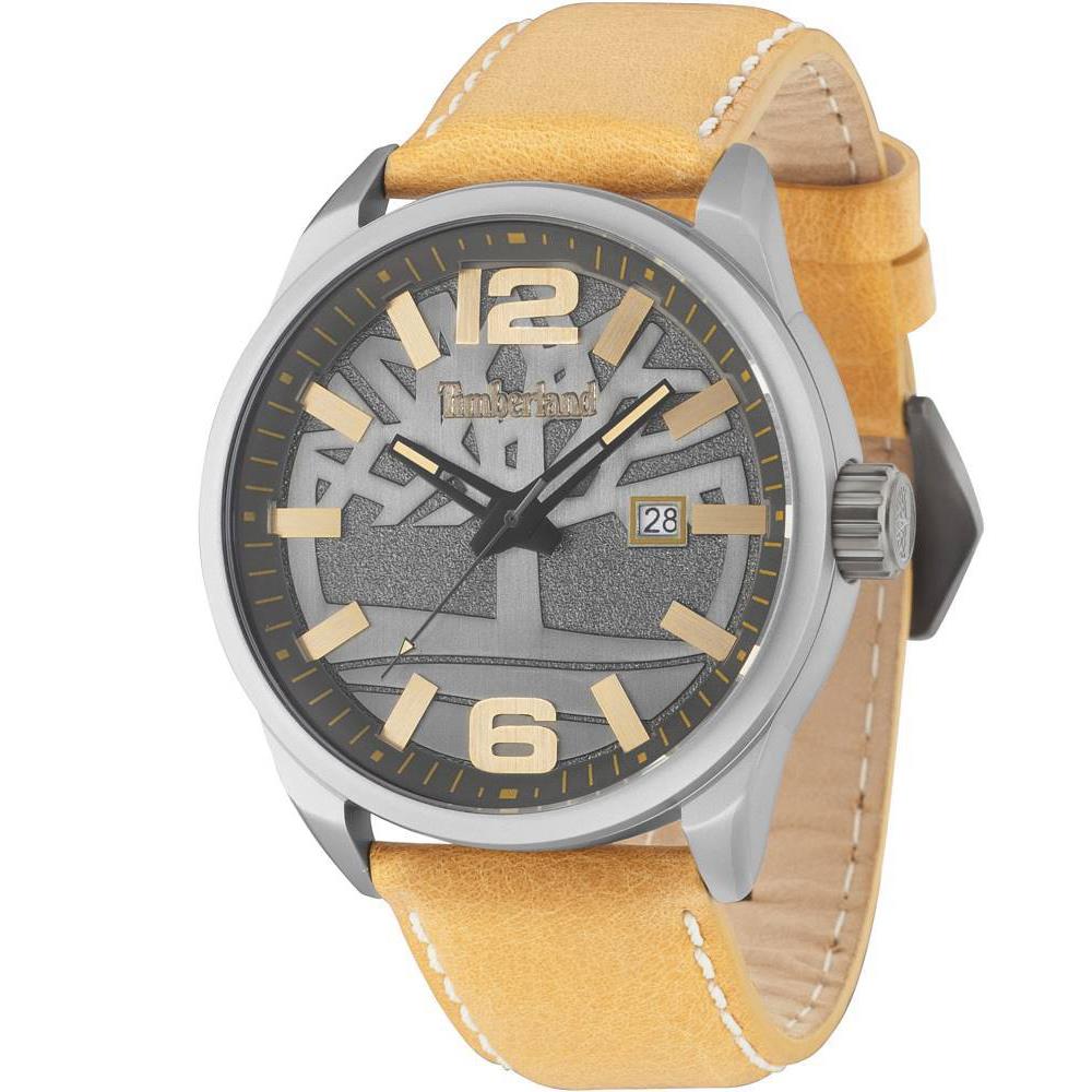 ساعت مچی مردانه تیمبرلند Timberland با طراحی روزانه بند چرمی قهوه ای و قاب فلزی طوسی و صفحه طوسی با قابلیت  تقویم / شب نما و موتور ژاپنی با انرژی باتری و مقاومت در برابر آب تا عمق 50 متر به همراه دو سال گارانتی بین المللی