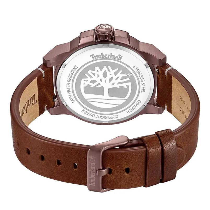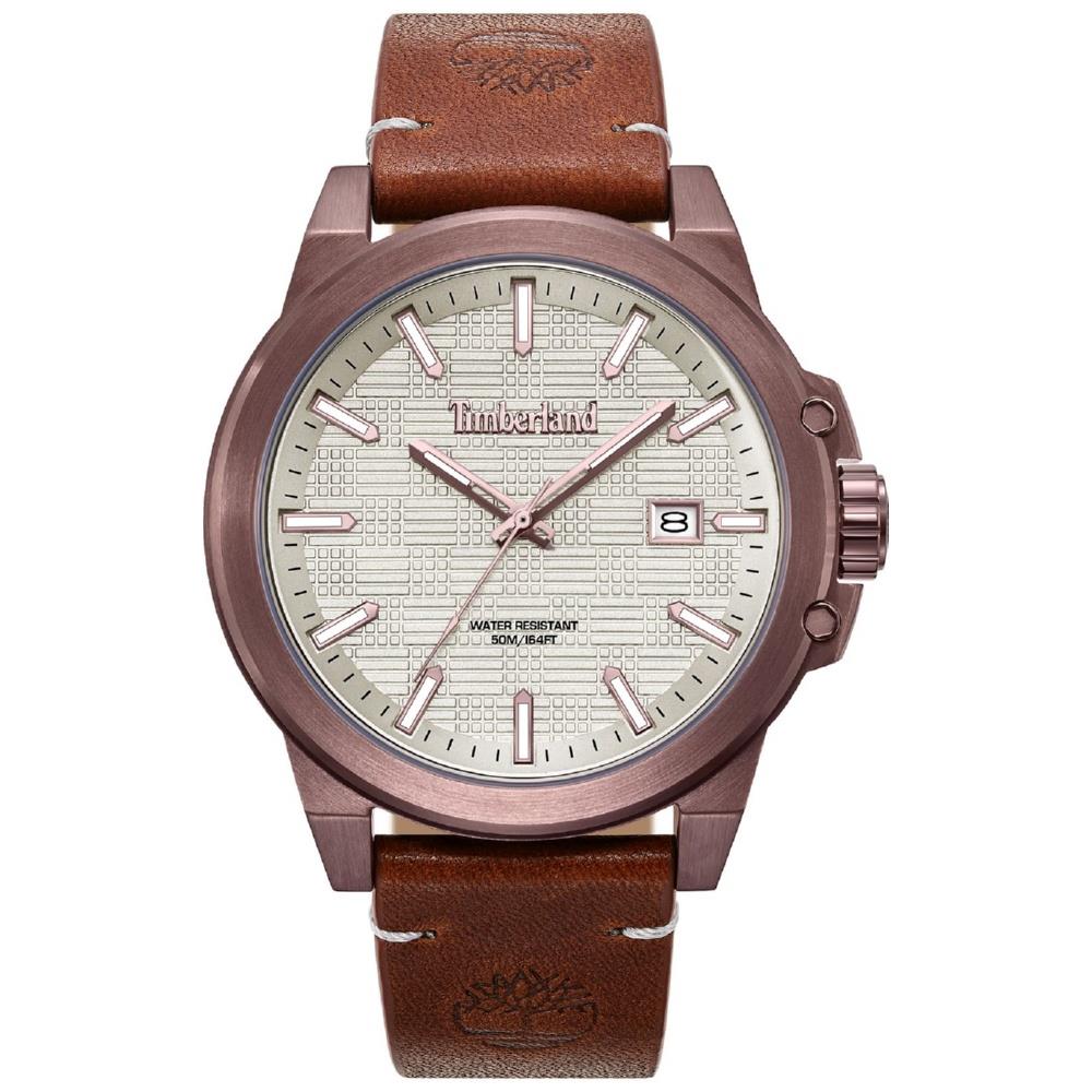 ساعت مچی مردانه تیمبرلند Timberland با طراحی روزانه بند چرمی قهوه ای و قاب فلزی قهو های و صفحه کرم با قابلیت شب نما/ تقویم و موتور ژاپنی با انرژی باتری و مقاومت در برابر آب تا عمق 50 متر به همراه دو سال گارانتی بین المللی