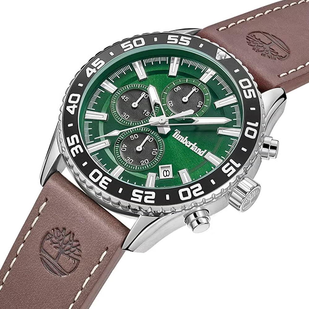 ساعت مچی مردانه تیمبرلند Timberland با طراحی روزانه بند چرمی قهوه ای و قاب دو رنگ و صفحه دو رنگ  با قابلیت کرنوگراف / تقویم / شب نما / زه چرخان و موتور ژاپنی با انرژی باتری و مقاومت در برابر آب تا عمق 30 متر به همراه دو سال گارانتی بین المللی