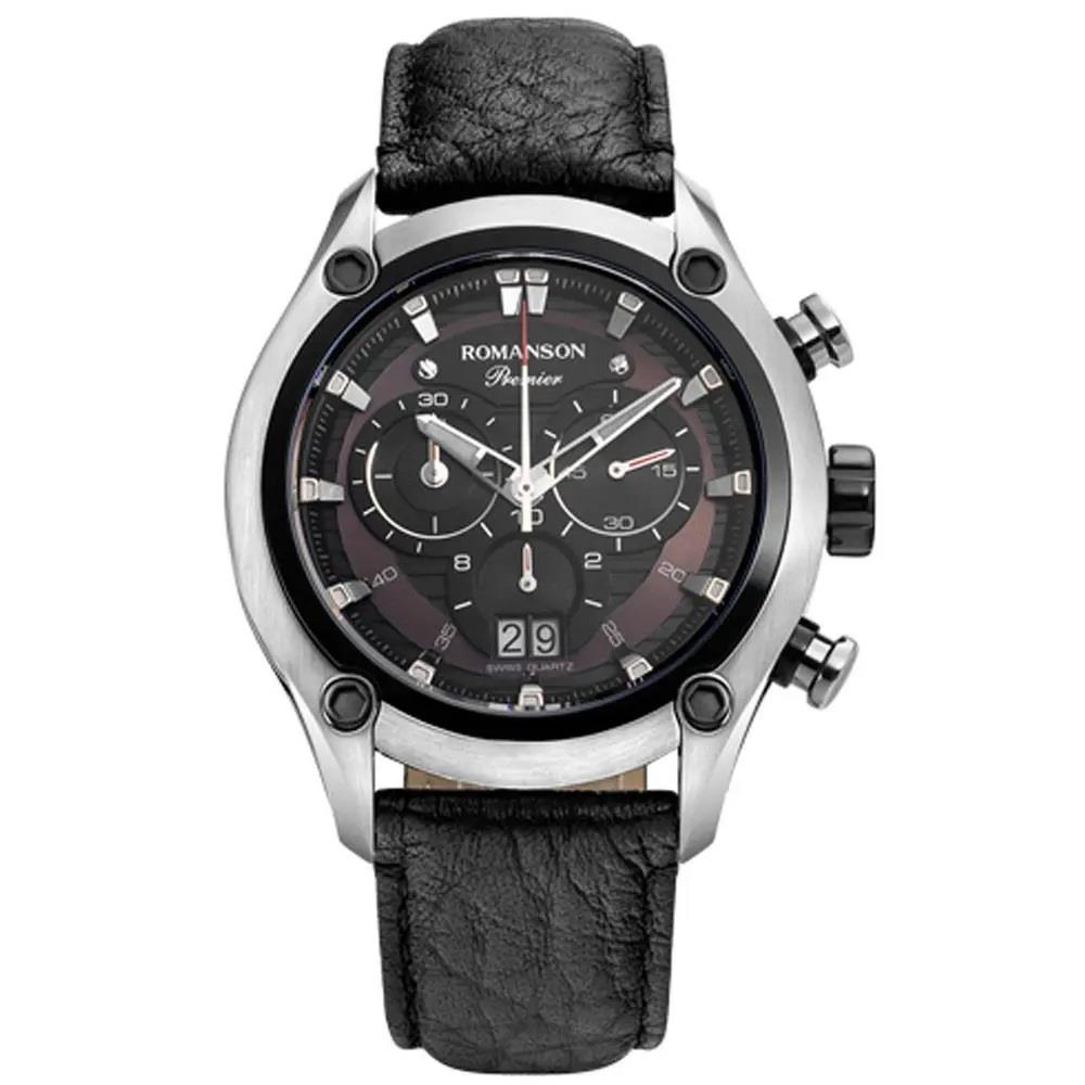 ساعت مچی مردانه رومانسون ROMANSON با طراحی اسپرت بند چرمی مشکی با قاب استیل و صفحه گرد دورنگ و موتور ژاپنی با انرژی باتری / قابلیت داشتن شب نما / تقویم / کرنوگراف و مقاوم در برابر آب تا عمق 50 متر به همراه دو سال گارانتی بین المللی