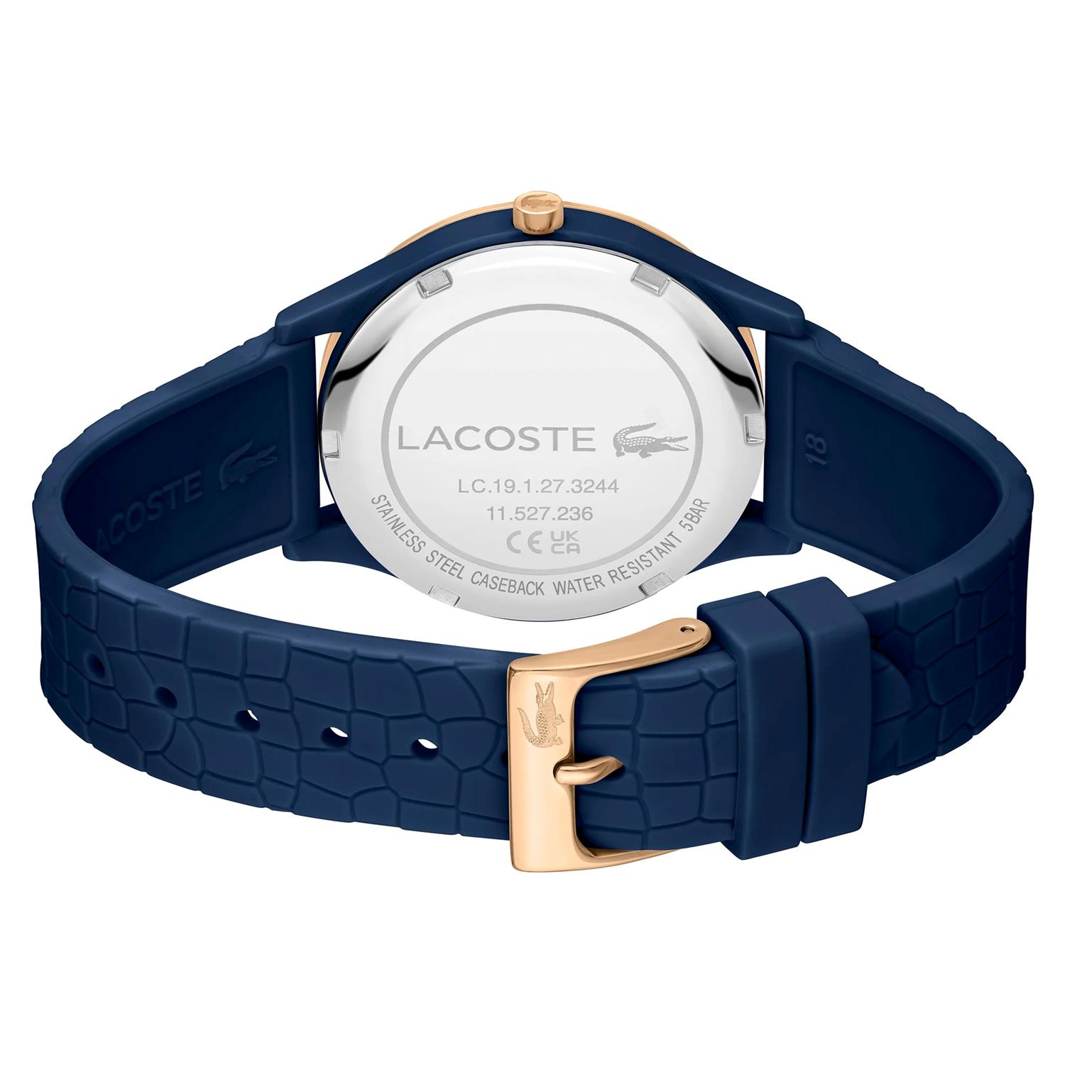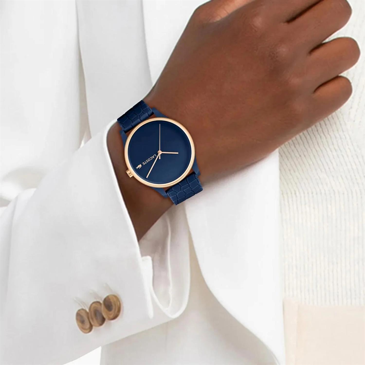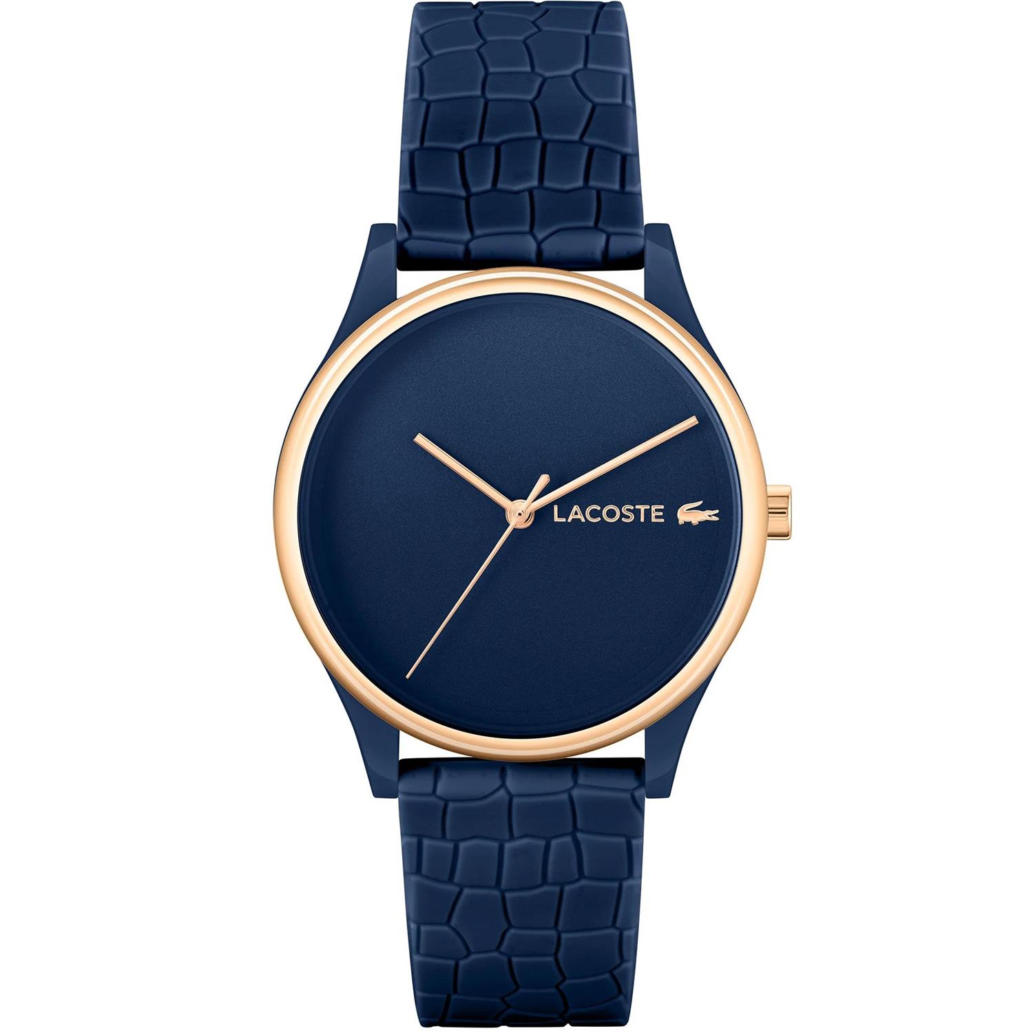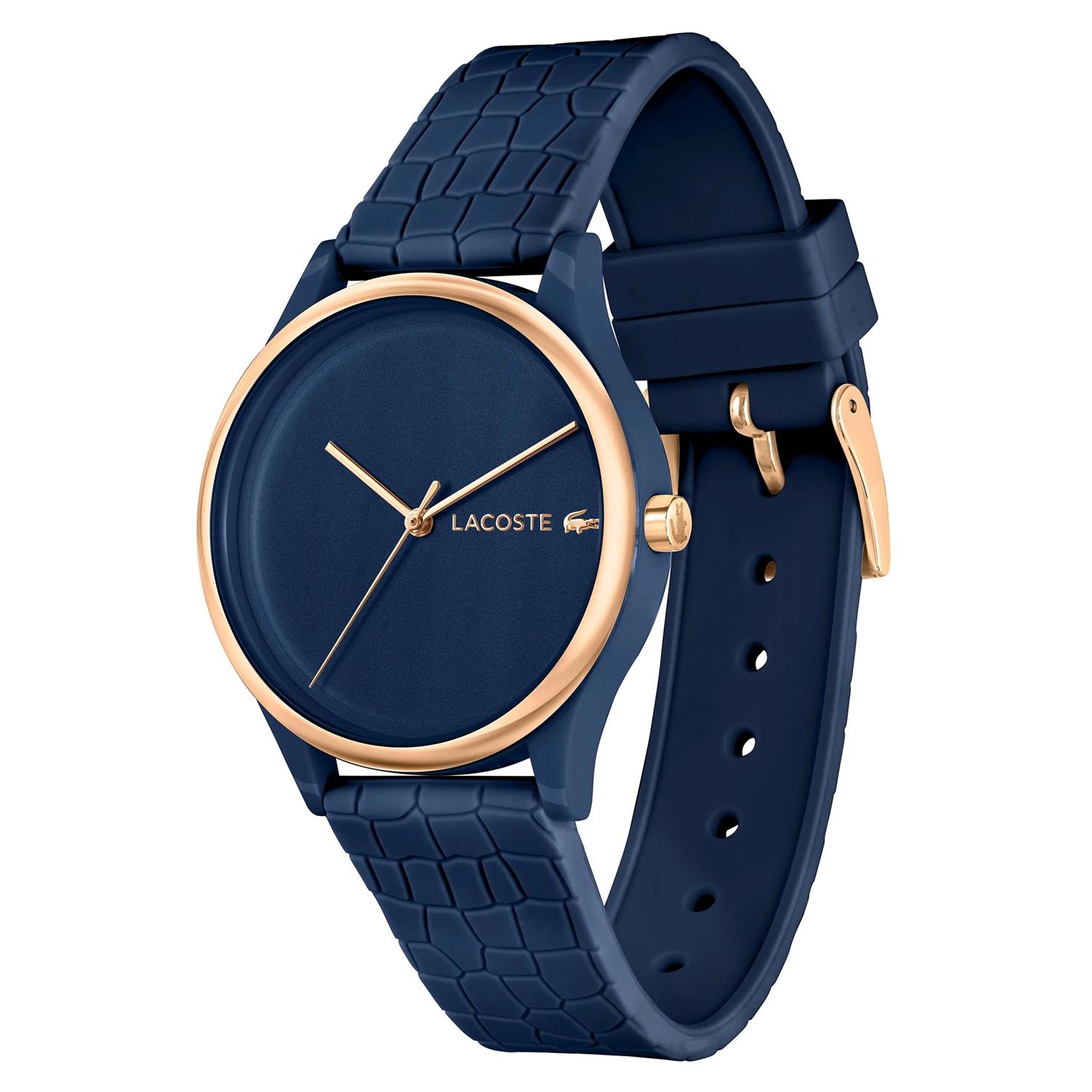 ساعت مچی زنانه لاگوست Lacoste با طراحی روزانه بند سیلیکونی سرمه ای با قاب دو رنگ و صفحه سرمه ای و موتور ژاپنی با انرژی باتری و مقاوم در برابر آب تا عمق 50 متر به همراه گارانتی بین المللی