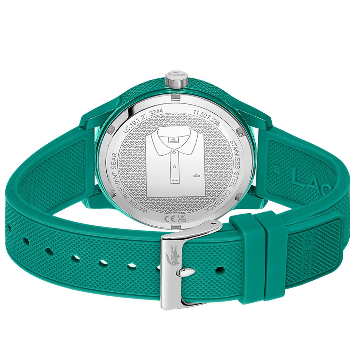 ساعت مچی مردانه لاگوست Lacoste با طراحی روزانه سبز رنگ بند سیلیکونی با قاب و صفحه گرد سبز با قابلیت داشتن شب نما و موتور ژاپنی با انرژی باتری و مقاوم در برابر آب تا عمق 50 متر به همراه گارانتی بین المللی