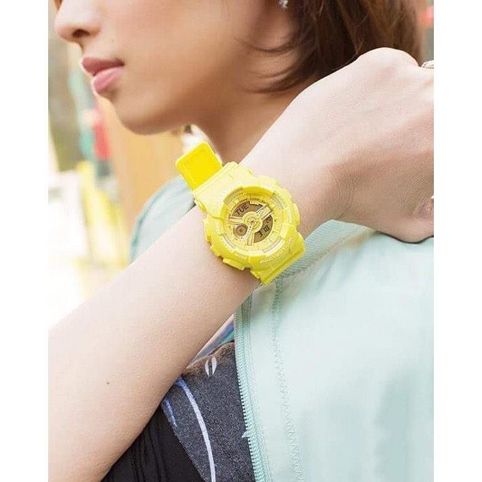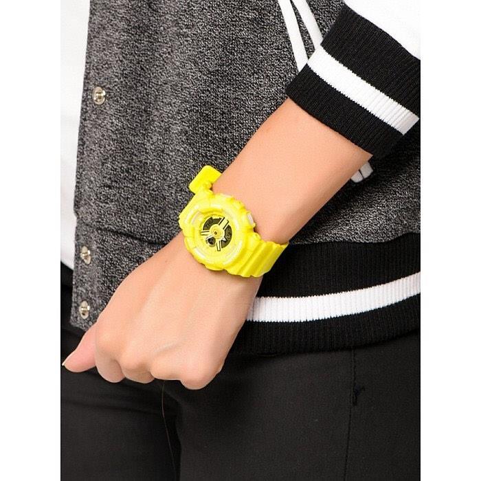 ساعت مچی زنانه کاسیو casio با طراحی روزانه بند سیلیکونی زرد با قاب گرد زرد و صفحه گرد زرد با نمایشگر عقر به ای / دیجیتالی و قابلیت داشتن کرنوگراف ,تقویم ,روزهای هفته ,روز و شب ,زنگ هشدار ,دو زمانه ,ساعت کشورها ,ضد ضربه تایمر شمارش معکوس نور پشت صفحه  و موتور ژاپنی با انرژی باتری و مقاوم در برابر آب تا عمق 100 متر به همراه گارانتی بین المللی
