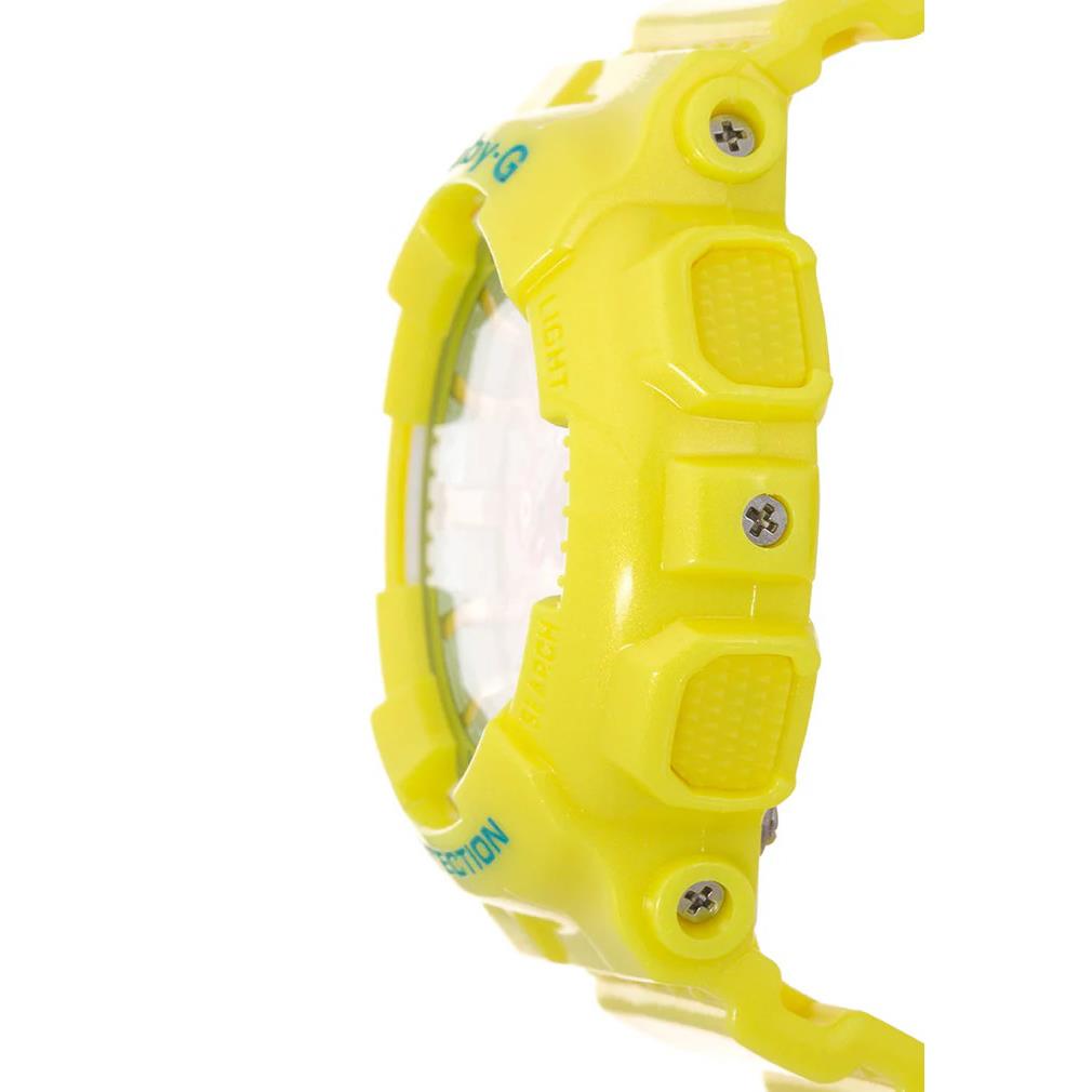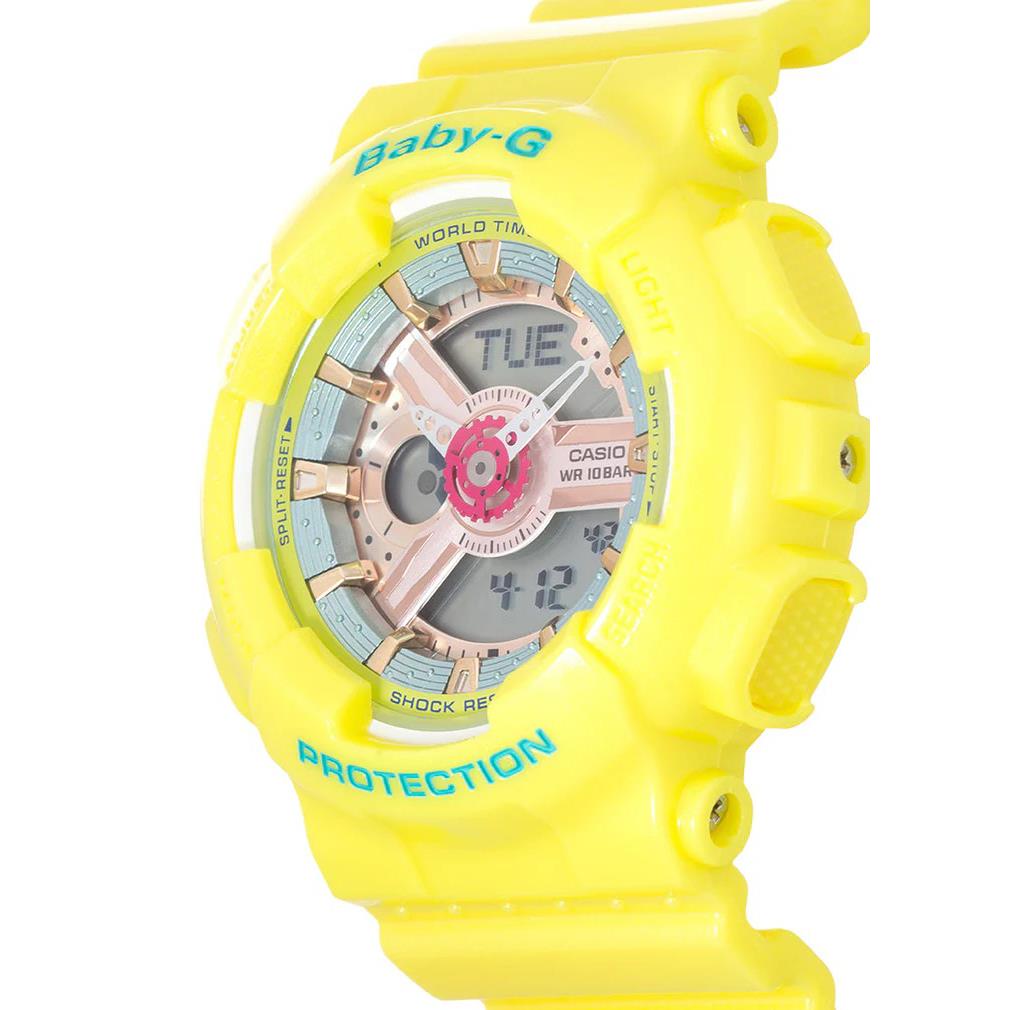 ساعت مچی زنانه کاسیو casio با طراحی روزانه بند سیلیکونی زرد با قاب گرد زرد و صفحه گرد چند رنگ با نمایشگر عقر به ای / دیجیتالی و قابلیت داشتن کرنوگراف ,تقویم ,روزهای هفته ,روز و شب ,زنگ هشدار ,دو زمانه ,ساعت کشورها ,ضد ضربه تایمر شمارش معکوس نور پشت صفحه  و موتور ژاپنی با انرژی باتری و مقاوم در برابر آب تا عمق 100 متر به همراه گارانتی بین المللی