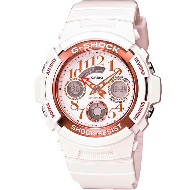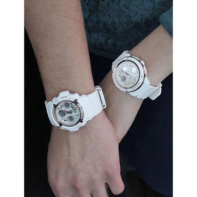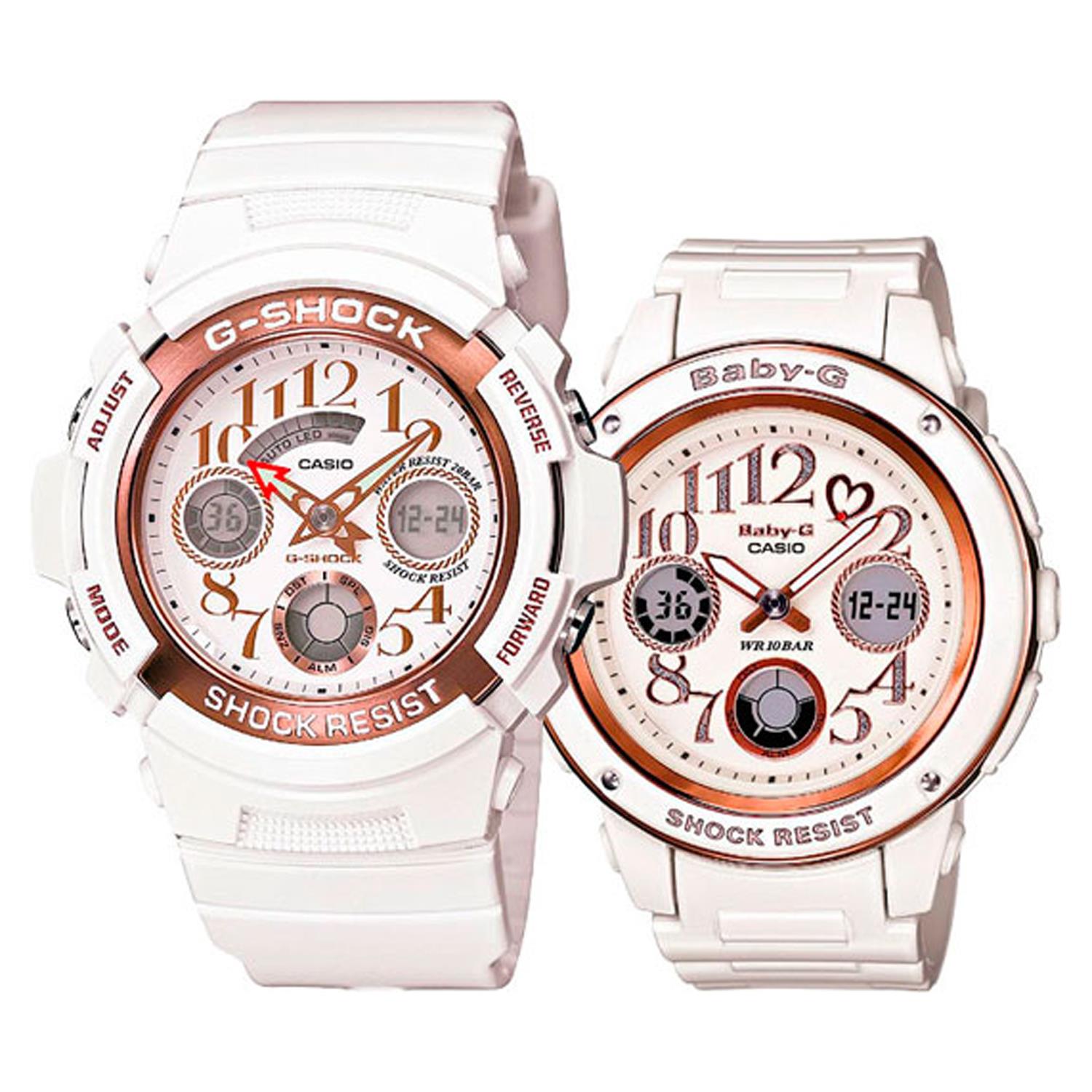 ساعت مچی مردانه / زنانه کاسیو casio با طراحی روزانه بند سیلیکونی سفید با قاب سفید مسی و صفحه گرد چند رنگ با نمایشگر دیجیتالی / عقربه ای  و قابلیت داشتن تایمر شمارش معکوس / تقویم/ کرنوگراف / روزوشب / روزهای هفته /تایمر شمارش معکوس / نور پشت صفحه / دوزمانه / زنگ هشدار و موتور ژاپنی با انرژی باتری و مقاوم در برابر آب تا عمق 200 متر / 100 متر به همراه گارانتی بین المللی