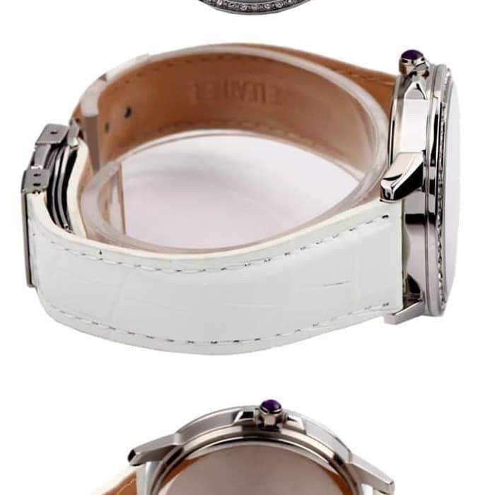 ساعت مچی زنانه کاسیو casio با طراحی روزانه بند سفید با قاب دور نگین استیل و صفحه گرد نگین دار نقره ای و قابلیت داشتن تقویم,روزهای هفته روزوشب شبنما و موتور ژاپنی با انرژی باتری و مقاوم در برابر آب تا عمق 50 متر به همراه گارانتی بین المللی
