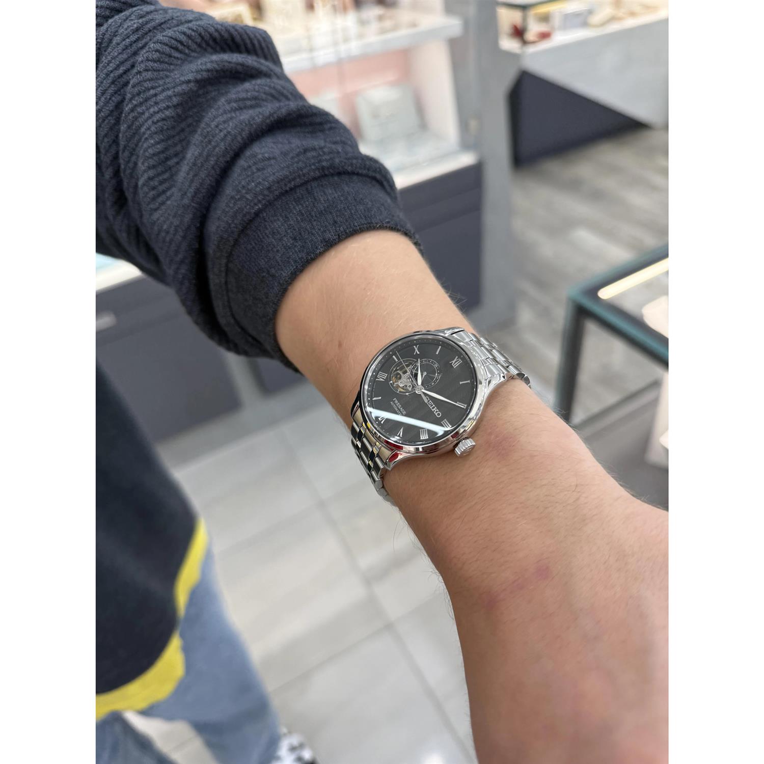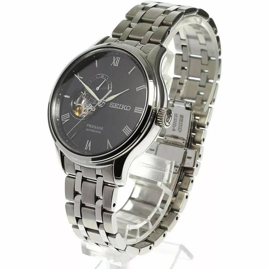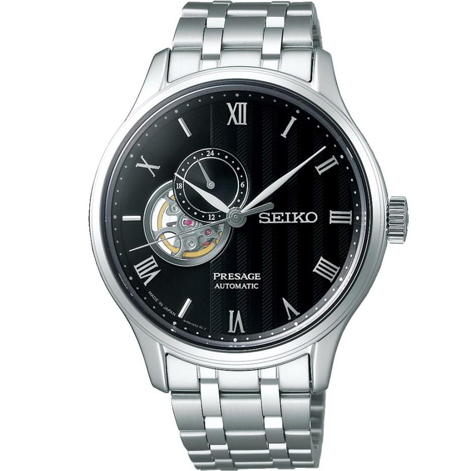 ساعت مچی مردانه سیکو seiko با طراحی روزانه بند استیل, قاب گرد استیل و صفحه گرد قلب بازمشکی با قابلیت داشتن روز و شب و موتور اتوماتیک ژاپنی با انرژی مکانیکی و مقاوم در برابر آب تا عمق 30 متر به همراه گارانتی بین المللی