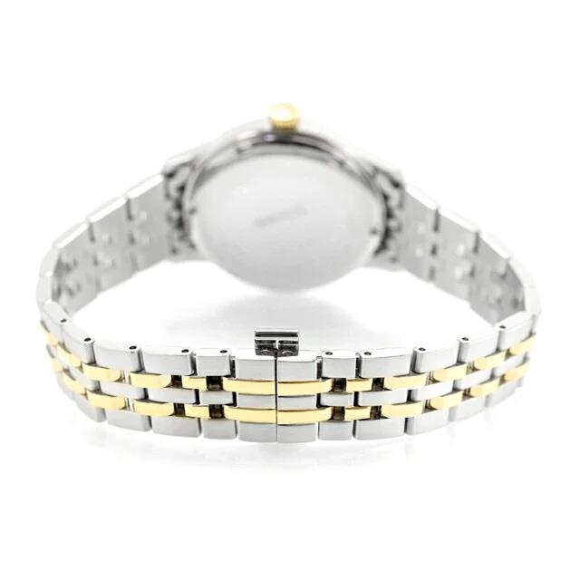 ساعت مچی زنانه سیکو SEIKO با طراحی کلاسیک بند دو رنگ با قاب دو رنگ و صفحه نگین دار طلایی و قابلیت داشتن تقویم و موتور اتوماتیک ژاپنی با انرژی مکانیکی و مقاومت در برابر آب تا عمق 50 متر به همراه دو سال گارانتی بین المللی