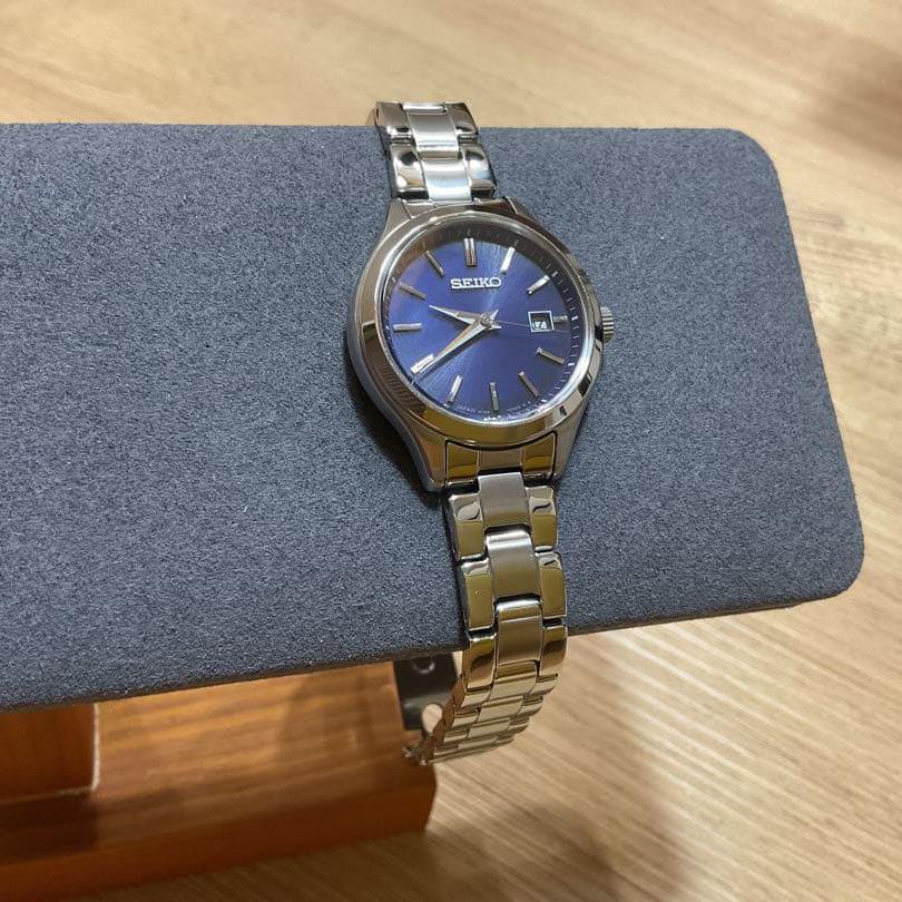 ساعت مچی زنانه سیکو SEIKO با طراحی کلاسیک بند استیل با قاب استیل و صفحه گرد سرمه ای با شیشه ضد خراش و قابلیت داشتن تقویم و موتور ژاپنی با انرژی خورشیدی و مقاومت در برابر آب تا عمق 100متر به همراه دو سال گارانتی بین المللی