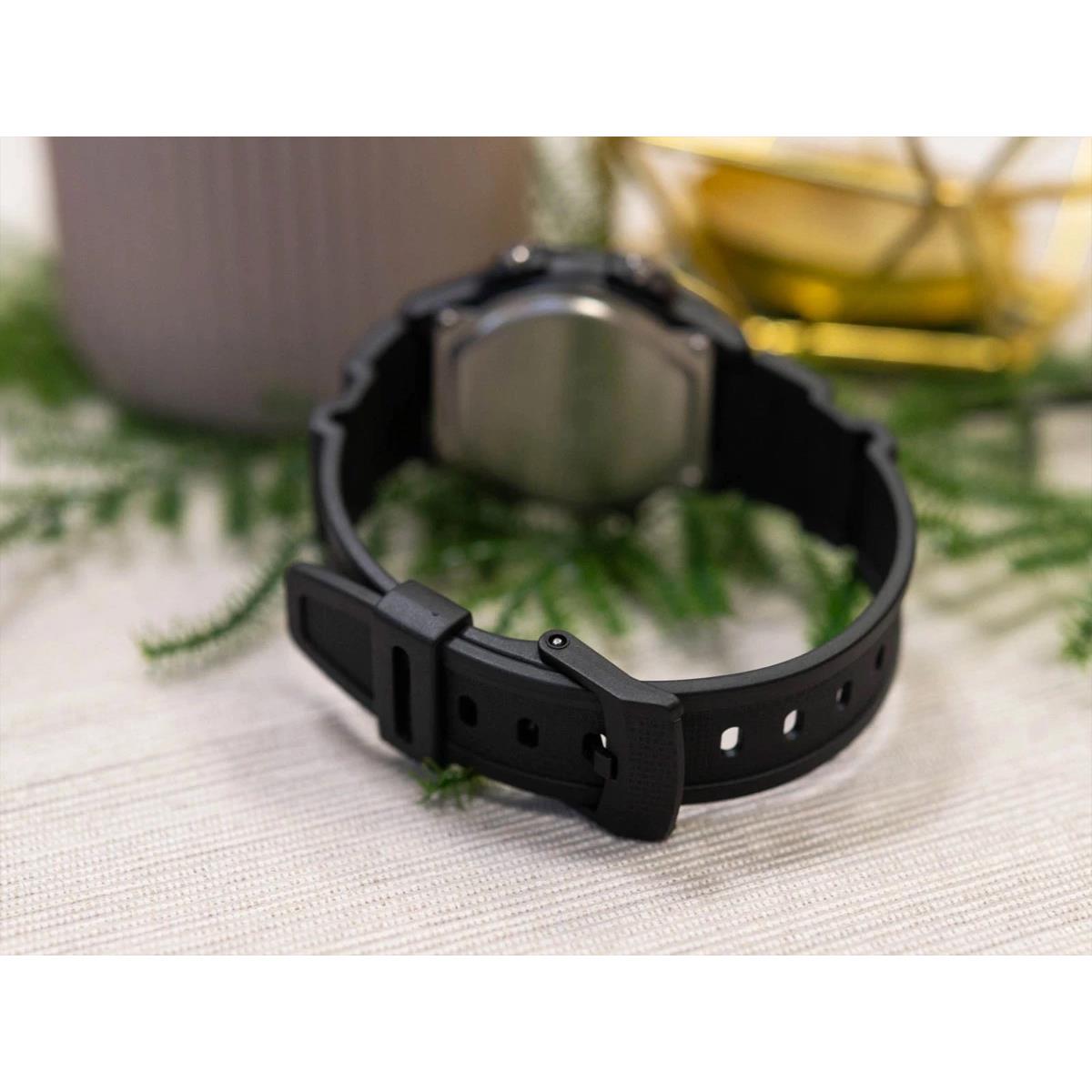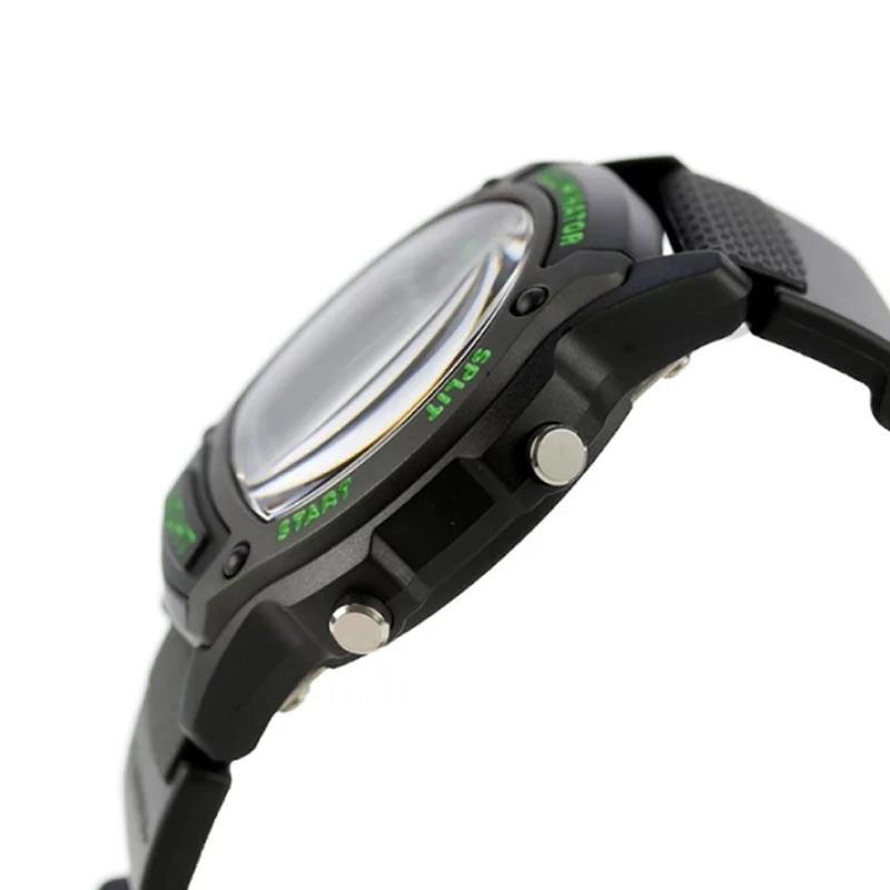 ساعت مچی پسرانه کاسیو Casio با طراحی روزانه بند سیلیکونی مشکی و قاب مشکی و صفحه دیجیتالی طوسی مشکی با قابلیت داشتن تقویم / کرنوگراف دوزمانه نور پشت صفحه / تایمر شمارش معکوس روز و شب / روزهای هفته / و موتور ژاپنی با انرژی باتری و مقاوم در برابر آب تا عمق 50 متر به همراه گارانتی بین المللی