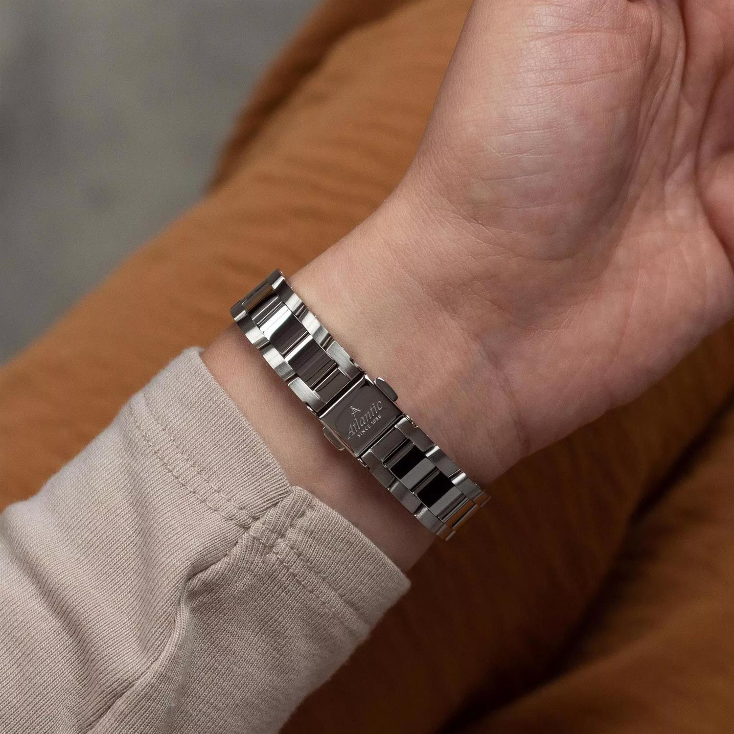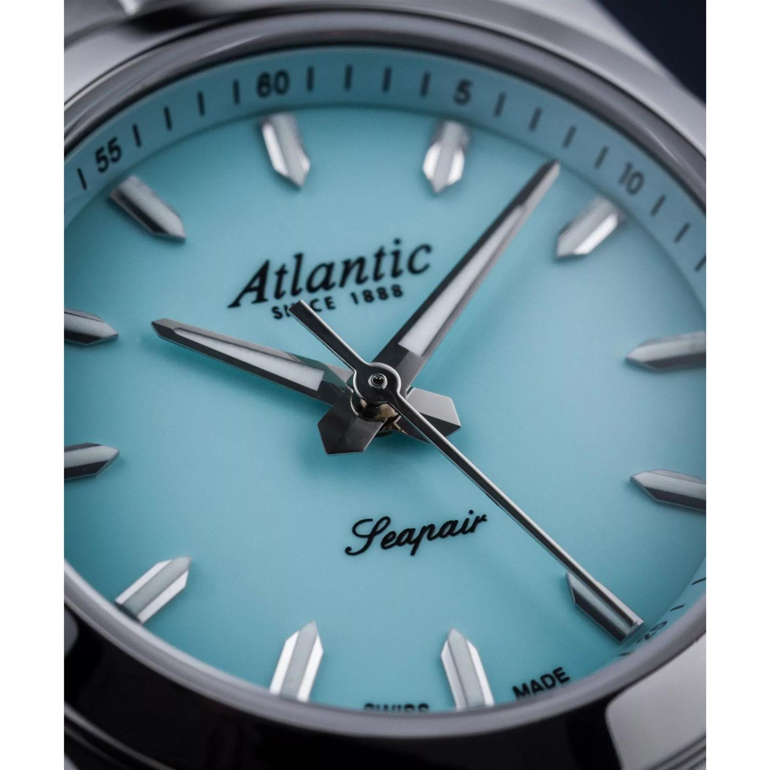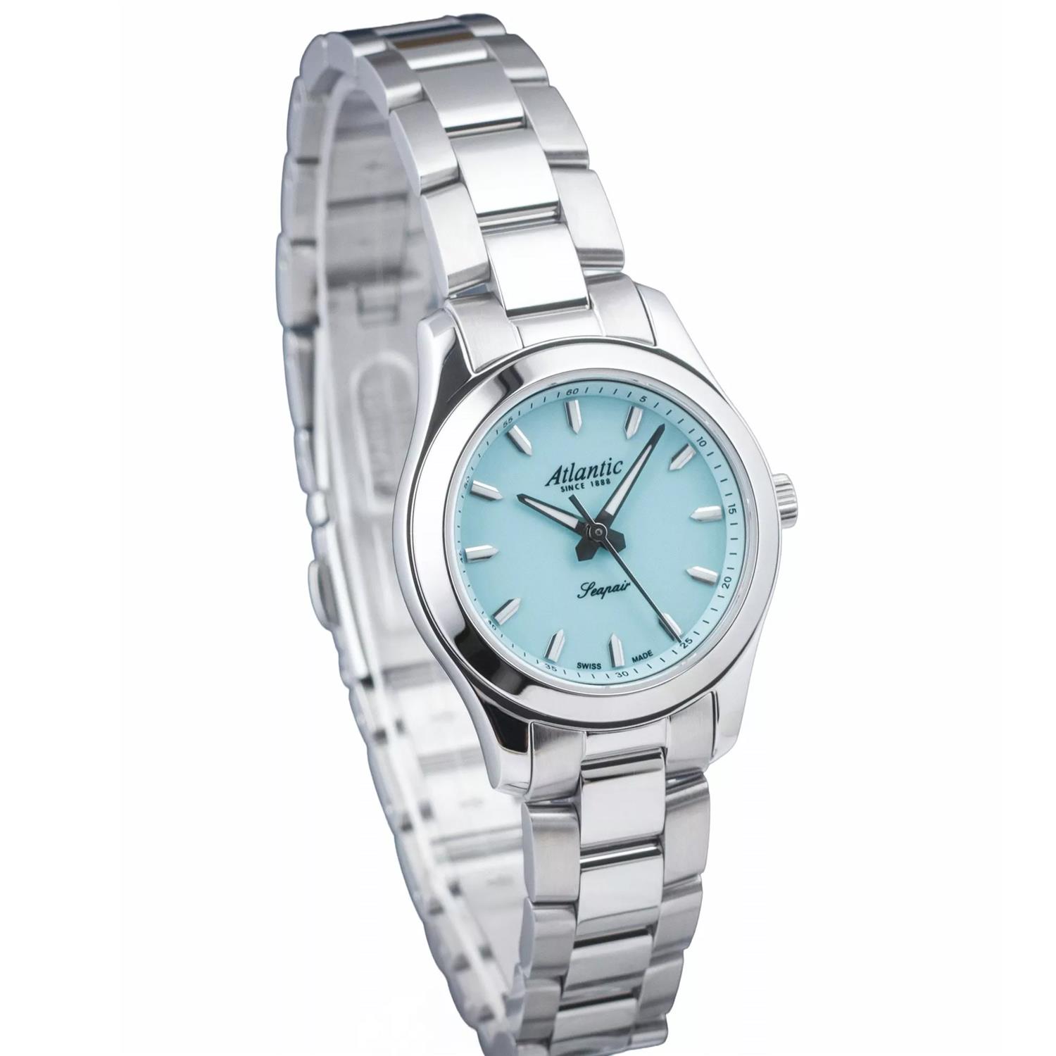ساعت مچی زنانه آتلانتیک Atlantic با طراحی ساده بند استیل و قاب گرد استیل  و صفحه آبی با شیشه ضد خراش وقابلیت داشتن شب نما و موتور سویسی با انرژی باتری و مقاوم در برابر آب تا عمق 30 متر به همراه گارانتی بین المللی