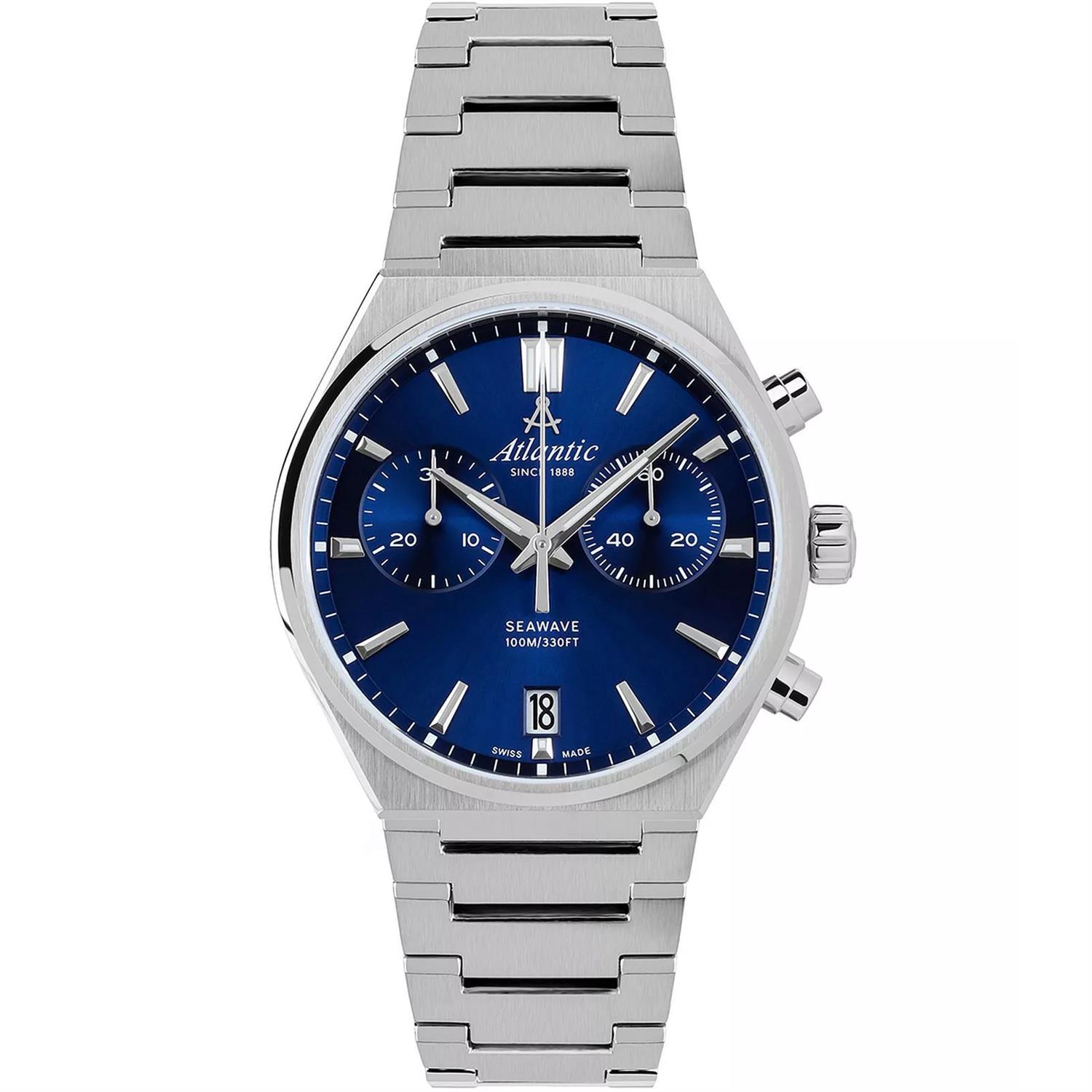 ساعت مچی مردانه آتلانتیک ATLANTIC با طراحی روزانه بند استیل با قاب استیل و صفحه سرمه ای با قابلیت داشتن تقویم, شب نما کرنوگراف و شیشه ضد خراش, موتور سوییسی با انرژی باطری و مقاوم در برابر آب تا عمق 100 متر به همراه دو سال گارانتی بین المللی