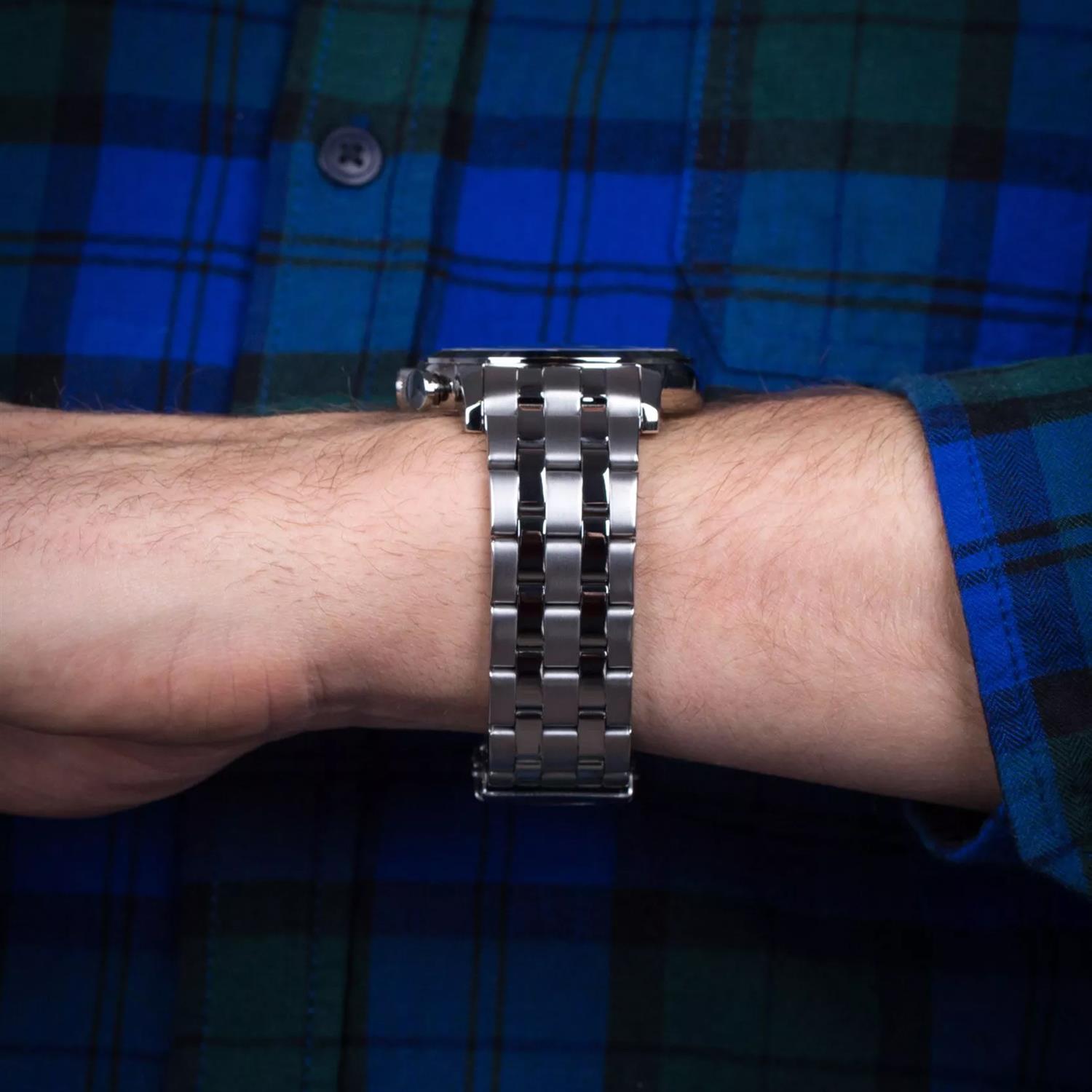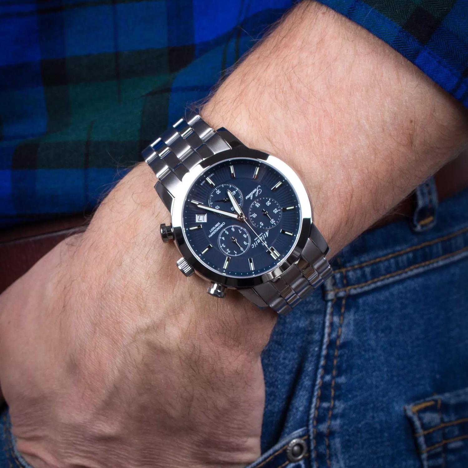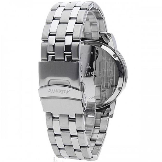 ساعت مچی مردانه آتلانتیک ATLANTIC با طراحی روزانه بند استیل با قاب استیل و صفحه سرمه ای با قابلیت داشتن تقویم, کرنوگراف و شیشه ضد خراش, موتور سوییسی با انرژی باطری و مقاوم در برابر آب تا عمق 50 متر به همراه دو سال گارانتی بین المللی