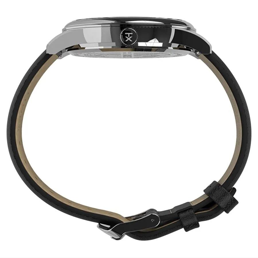 ساعت مچی مردانه تایمکس timex با طراحی اسپرت بند چرمی مشکی و قاب استیل با صفحه مشکی و قابلیت داشتن روزوشب / روزهای هفته / تقویم / شب نما و موتور ژاپنی با انرژی باطری و مقاوم در برابر آب تا عمق 50 متر به همراه گارانتی بین المللی