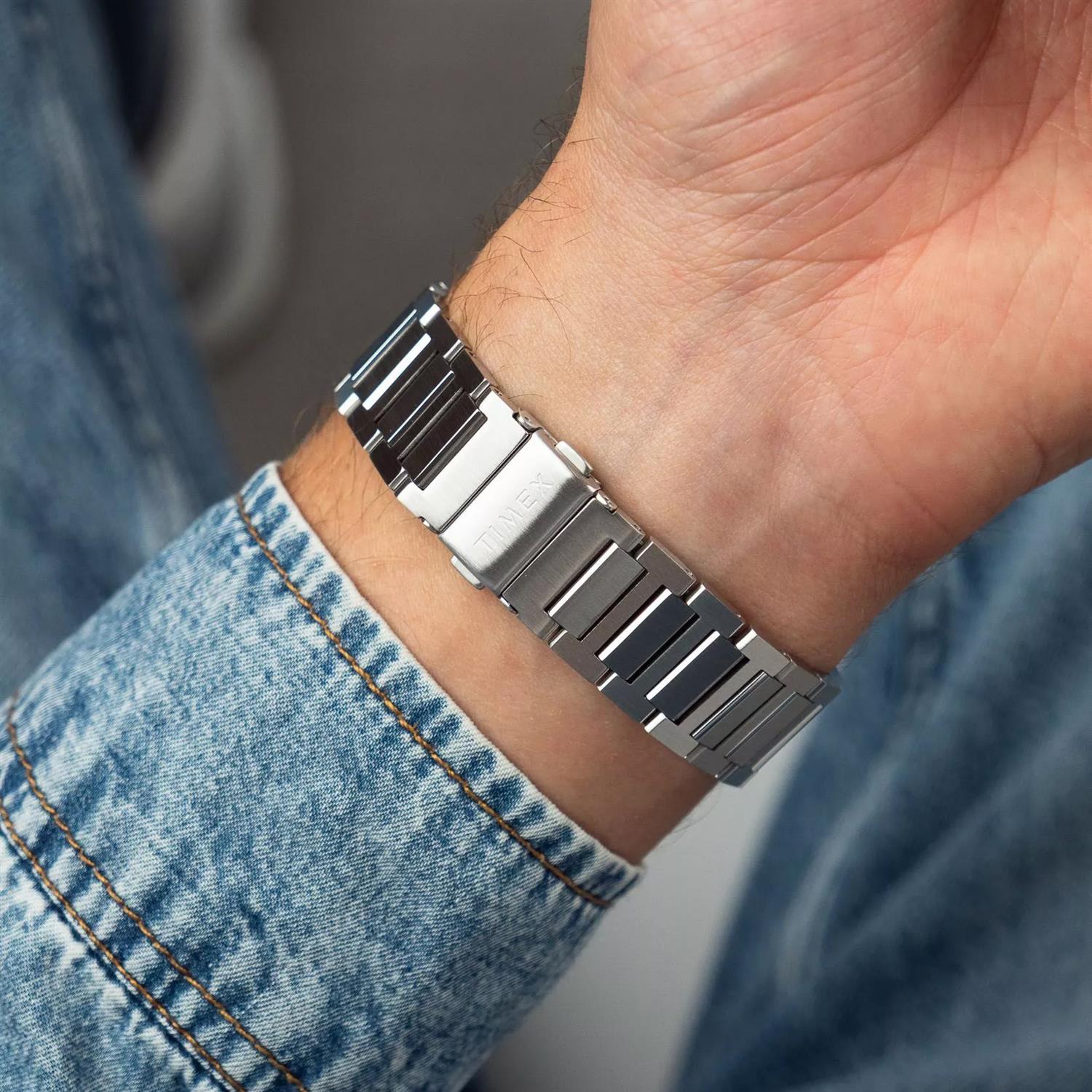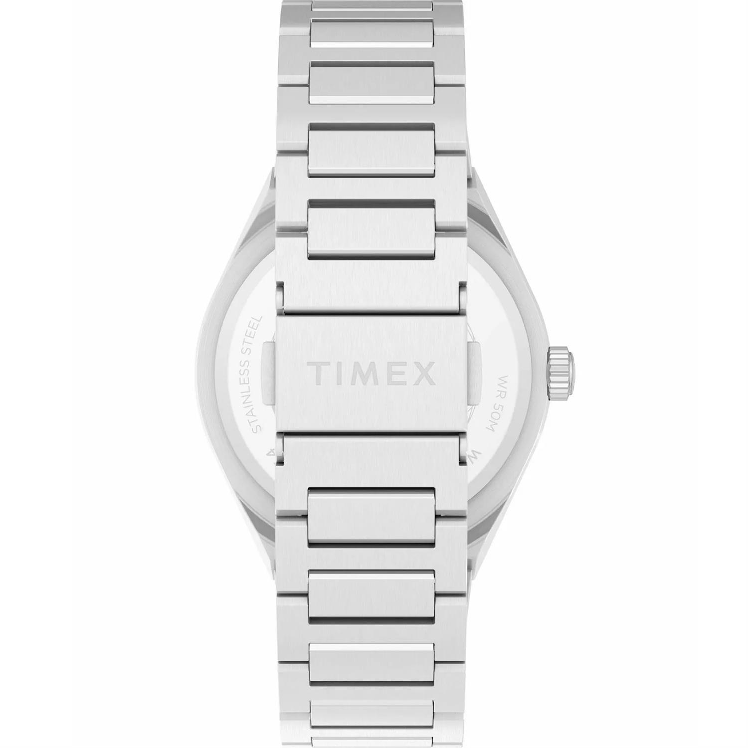ساعت مچی مردانه تایمکس timex با طراحی اسپرت بند استیل و قاب استیل با صفحه آبی و قابلیت داشتن شب نما / تقویم / روزهای هفته و موتور ژاپنی با انرژی باطری و مقاوم در برابر آب تا عمق 50 متر به همراه گارانتی بین المللی
