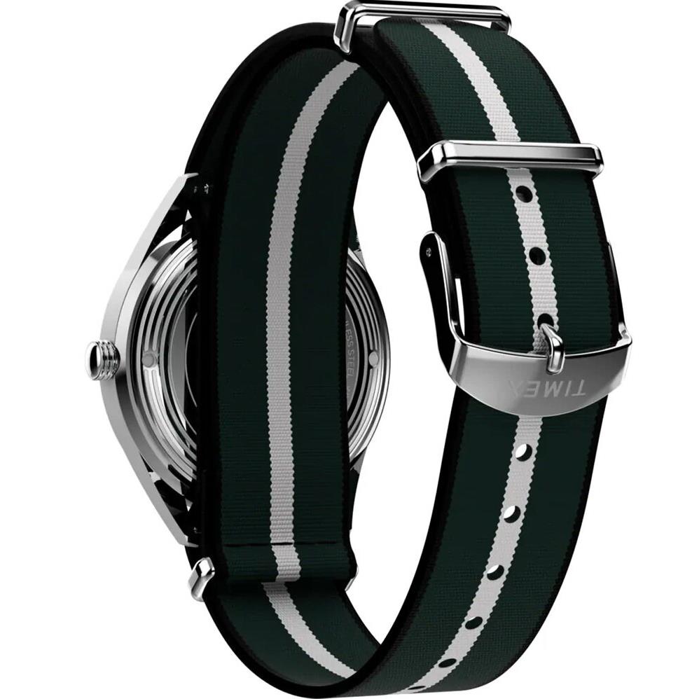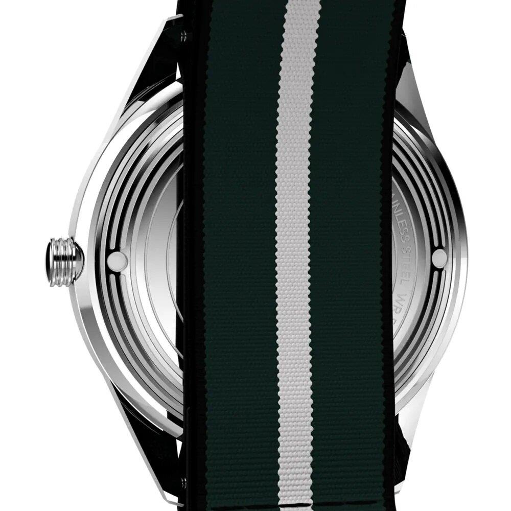 ساعت مچی مردانه تایمکس timex با طراحی اسپرت بند برزنتی و قاب استیل با صفحه سبز و قابلیت داشتن تقویم / روزهای هفته/ شب نما و موتور ژاپنی با انرژی باطری و مقاوم در برابر آب تا عمق 50 متر به همراه گارانتی بین المللی