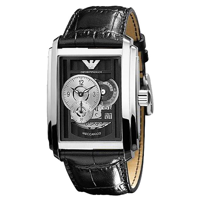 ساعت مچی مردانه/پسرانه امپوریو آرمانی EMPORIO ARMANI با طراحی اسپرت بند چرم مشکی با قاب مستطیل و صفحه مشکی/نقره ای با موتور اتوماتیک تقویمی به همراه دو سال گارانتی بین المللی شرکت آرمان گالری ساعت مچی مردانه آرمانی | EMPORIOARMANI | AR4228