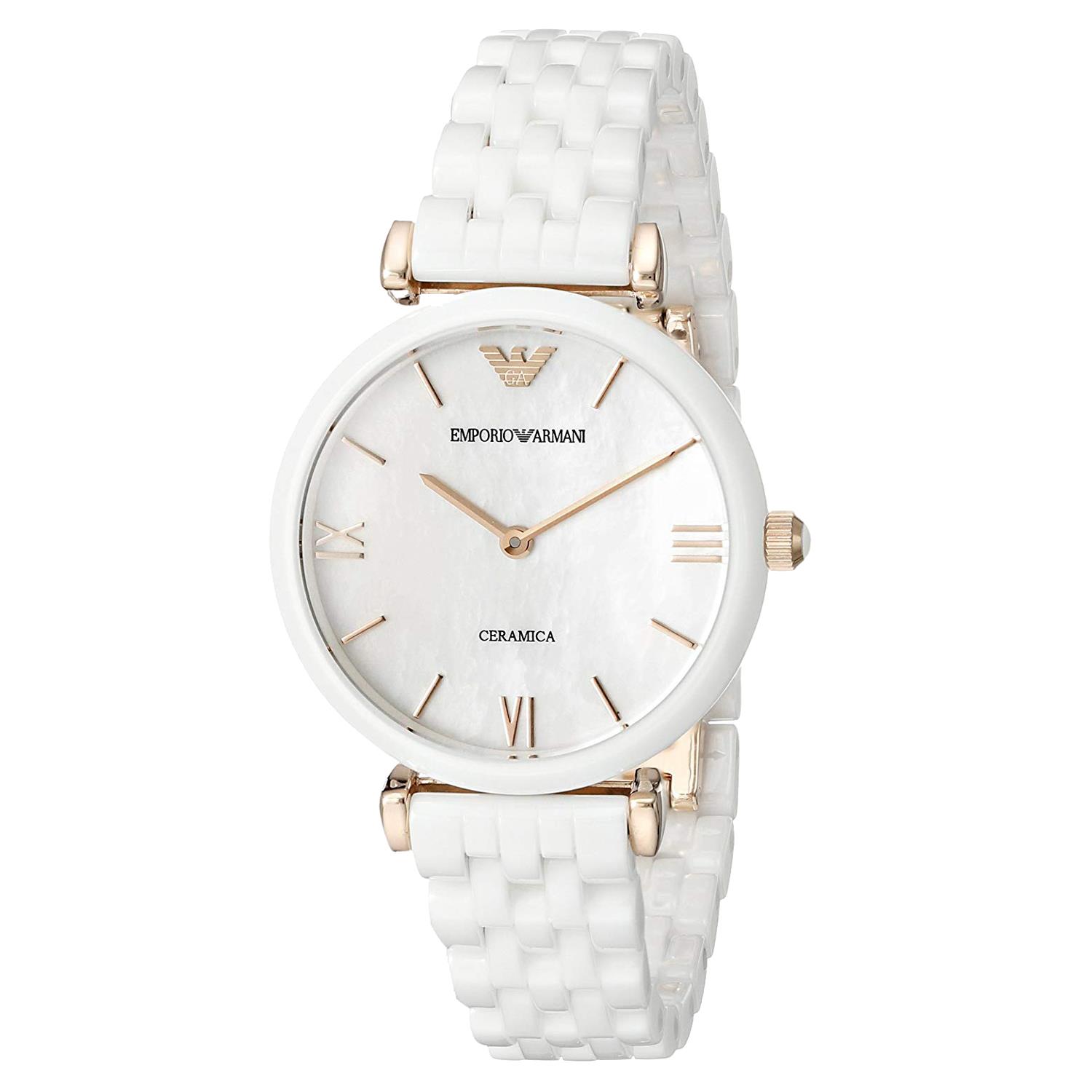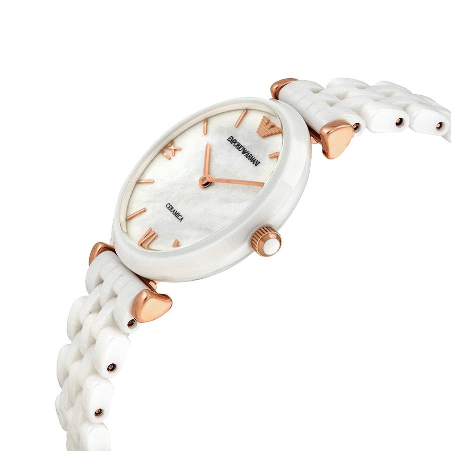 ساعت مچی زنانه/دخترانه امپوریو آرمانی EMPORIO ARMANI با طراحی کلاسیک سفید رنگ از جنس سرامیک با قاب گرد ظریف و صفحه صدفی به همراه دو سال گارانتی بین المللی شرکت آرمان گالری ساعت مچی زنانه آرمانی | EMPORIOARMANI | AR1486