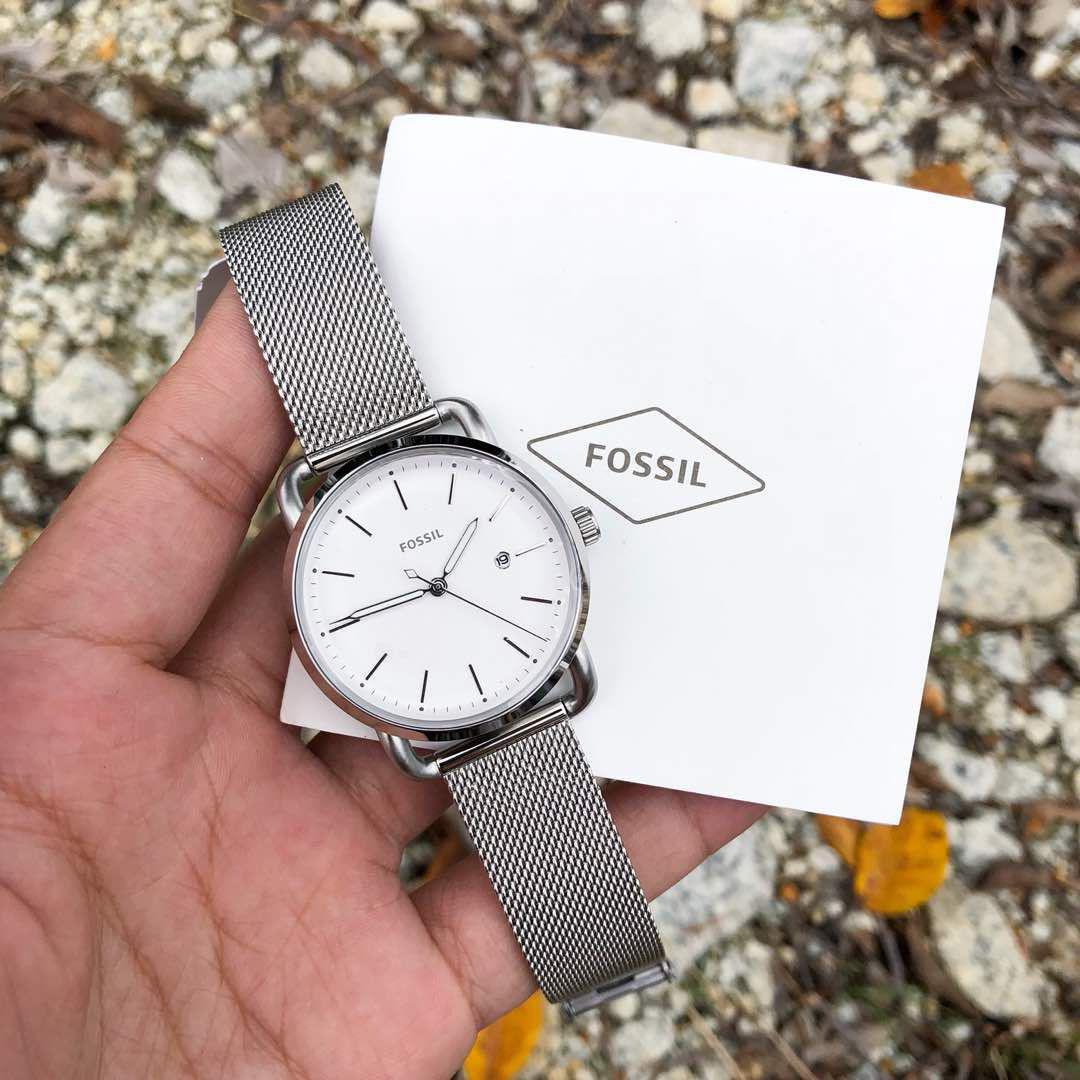 ساعت مچی زنانه/دخترانه فسیلFOSSIL با طراحی کلاسیک بند فلزی با قاب گرد و صفحه سفید با موتور تقویمی و منبع انرژی باطری این ساعت مچی زنانه به همراه دو سال گارانتی بین المللی شرکت آرمان گالری ارائه میگردد