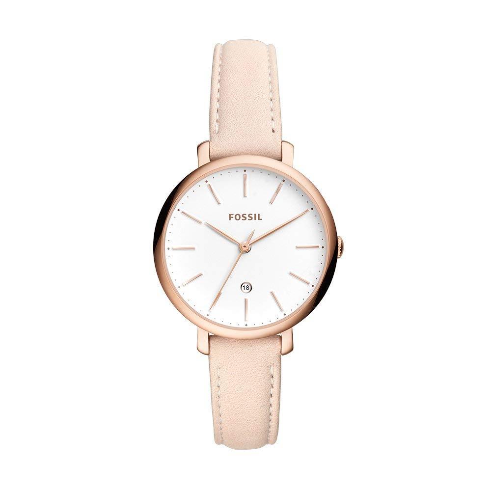 ساعت مچی زنانه/دخترانه فسیلFOSSIL با طراحی کلاسیک بند چرم کرم رنگ با قاب گرد رزگلد و صفحه سفید با موتور تقویمی و منبع انرژی باطری این ساعت مچی زنانه به همراه دو سال گارانتی بین المللی شرکت آرمان گالری ارائه میگردد