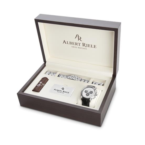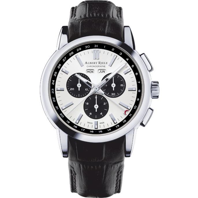 ساعت مچی مردانه/پسرانه آلبرت ریله ALBERT RIELE با طراحی اسپرت بند چرم مشکی با قاب گرد و صفحه دو رنگ و شیشه ضد خراش آنتی رفلکس با موتور کرنوگراف و فول دیت و از خانواده PREMIERE این ساعت مچی مردانه به همراه دو سال گارانتی بین المللی شرکت آناهید زروان ارائه میگردد