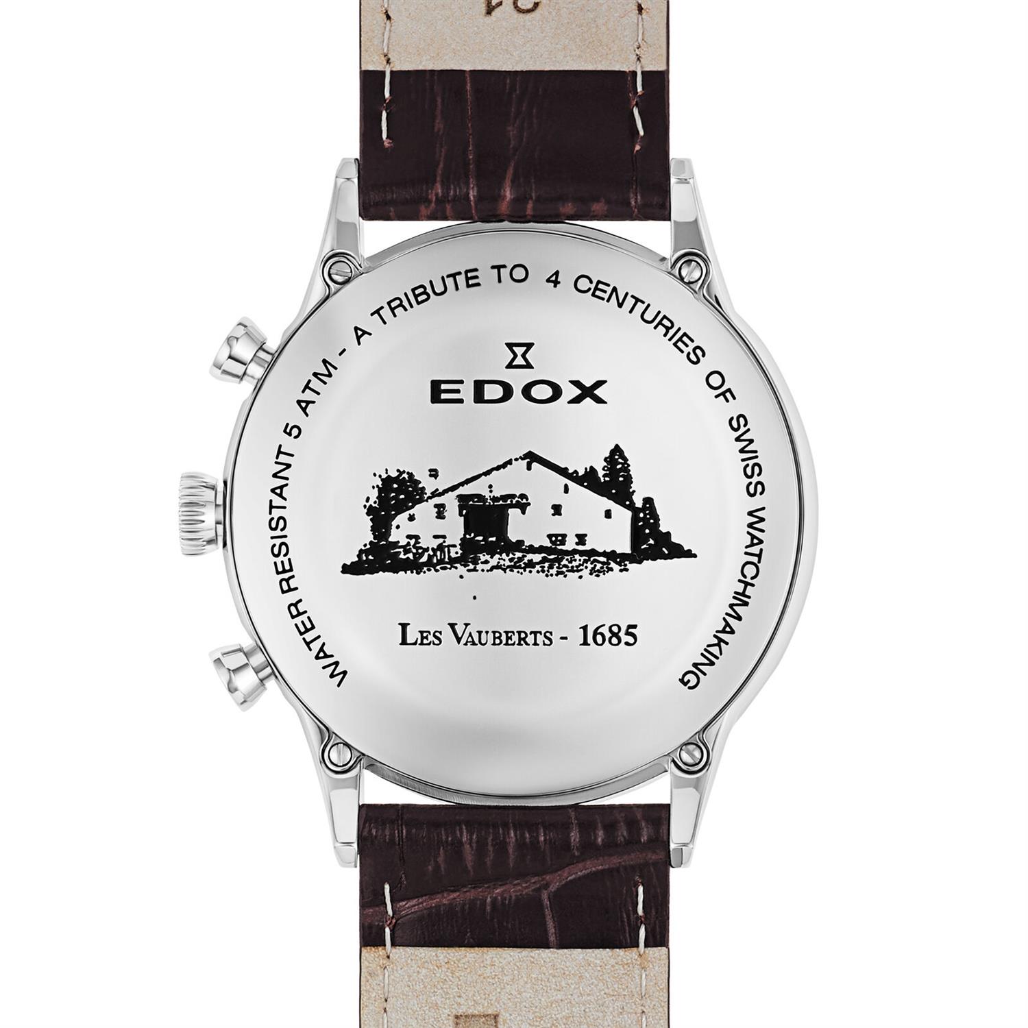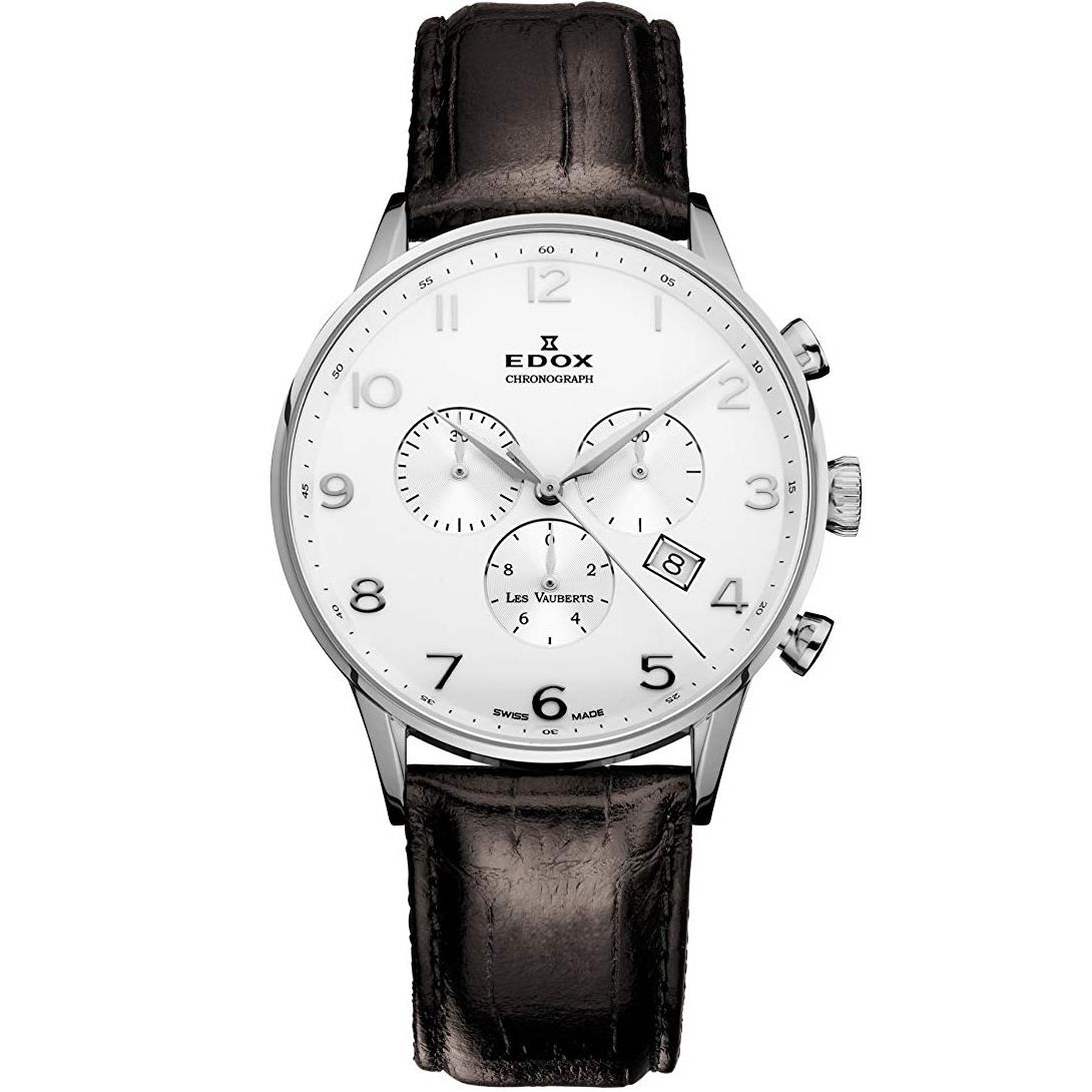 ساعت مچی مردانه/پسرانه ادکس EDOX با طراحی اسپرت بند چرم قهوه ای با قاب گرد و صفحه نقره ای با درج اعداد انگلیسی و شیشه ضد خش با موتور کوارتز و قابلیت تقویم و کرنومتر و از خانواده Les Vauberts این ساعت مچی مردانه به همراه دو سال گارانتی بین المللی شرکت جام جم ارائه میگردد