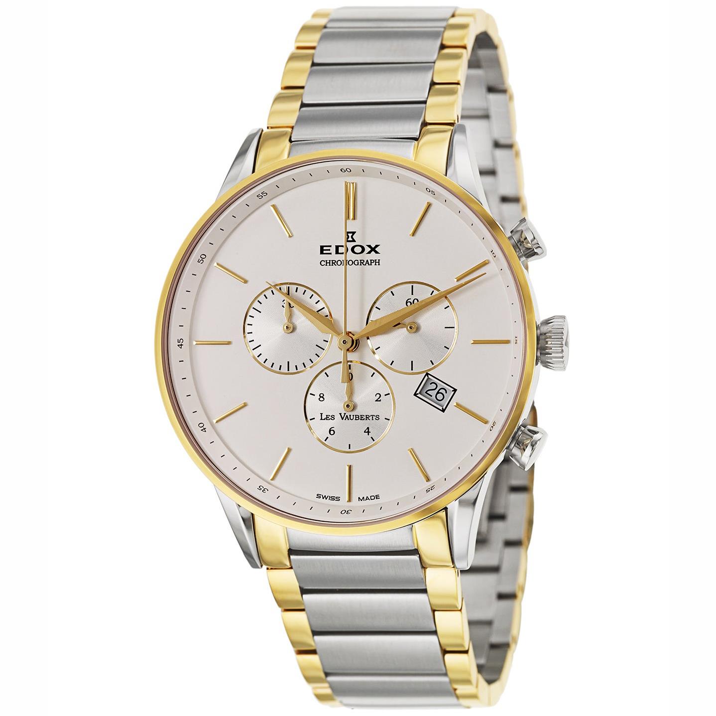 ساعت مچی مردانه/پسرانه ادکس EDOX با طراحی اسپرت دو رنگ با بند فلزی و قاب گرد با صفحه نقره ای با شیشه ضد خراش و موتور با قابلیت تقویم,کرنومتر با انرژی باطری و از خانواده Les Vauberts این ساعت مچی مردانه به همراه دو سال گارانتی بین المللی شرکت جام جم ارائه میگردد