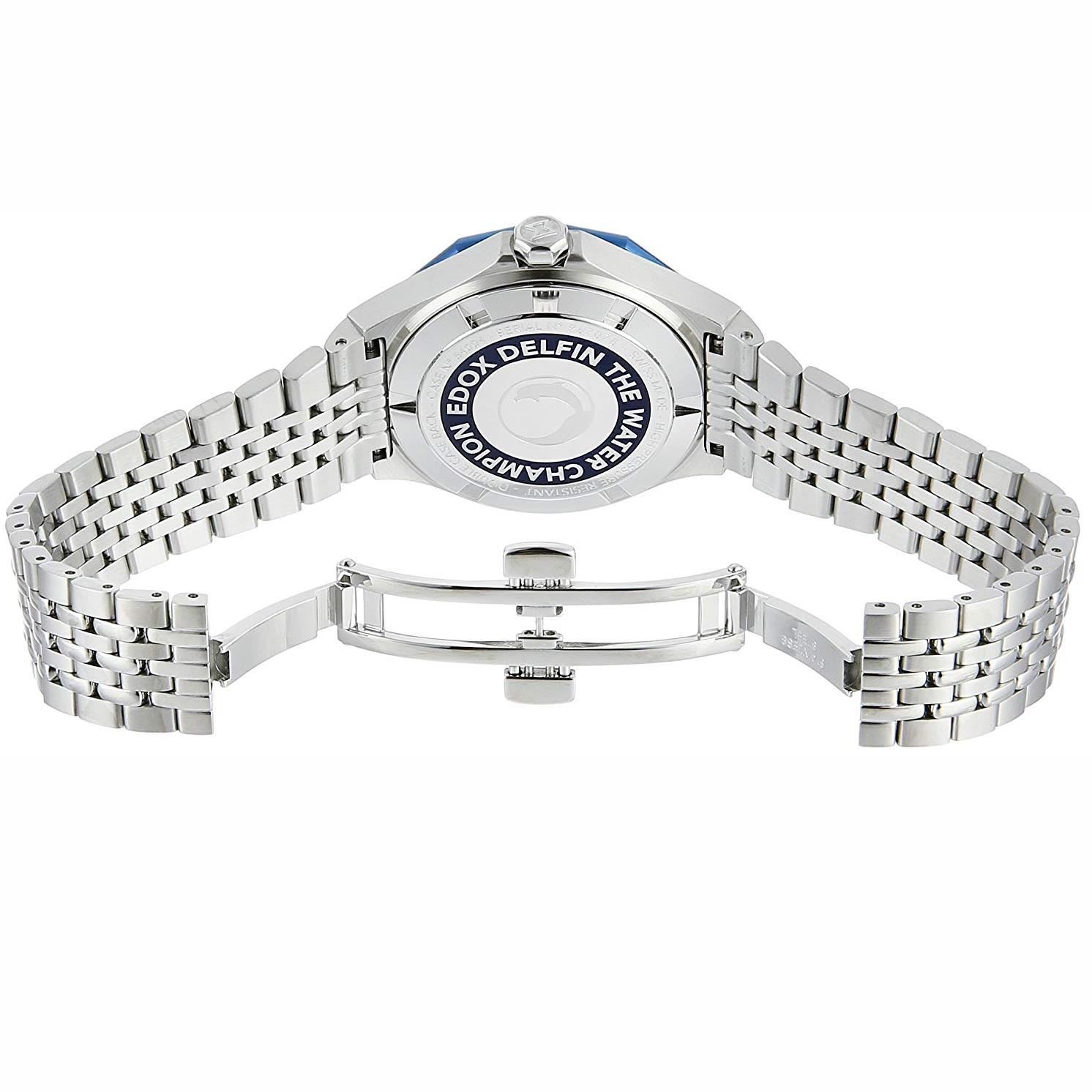 ساعت مچی زنانه/دخترانه ادکس EDOX با طراحی کلاسیک بند فلزی با قاب گرد و زه چندضلعی سرمه ای رنگ با صفحه نقره ای و شیشه ضد خراش با موتور کوارتز و قابلیت تقویم  و از خانواده Delfin این ساعت مچی زنانه به همراه دو سال گارانتی بین المللی شرکت جام جم ارائه میگردد